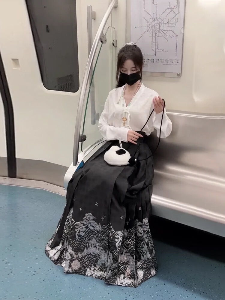 常缕竺马面裙全套新中式连衣裙女装2025春季新款国风改良明制汉服小个子 1047上衣+马面裙 S 建议80-100斤