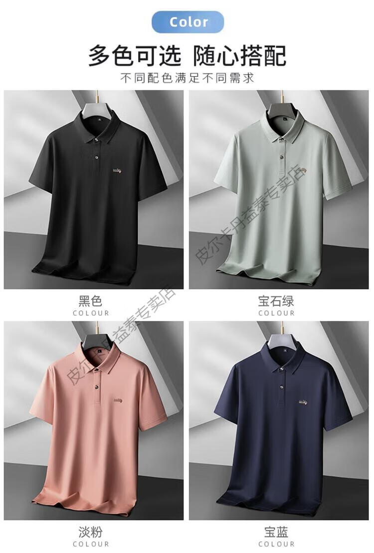 皮尔卡丹(pierre cardin)加肥加大码丝光棉商务polo.衫男短袖夏季胖子休闲翻领t恤上衣 6625黑色 6XL (230-250斤)