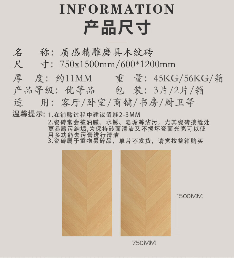 XMSJ精雕鱼骨纹木纹瓷砖600X1200客厅卧室地砖750X1500仿实木地板砖 Y6228