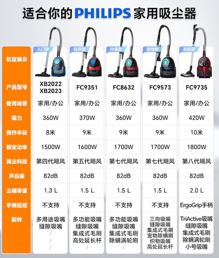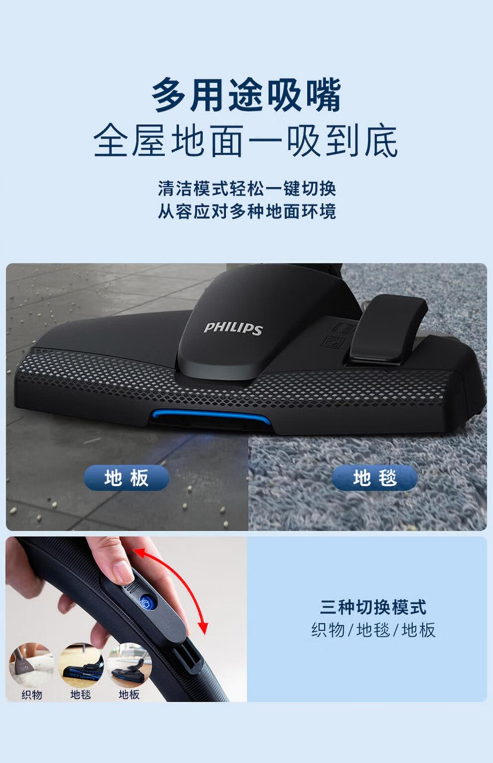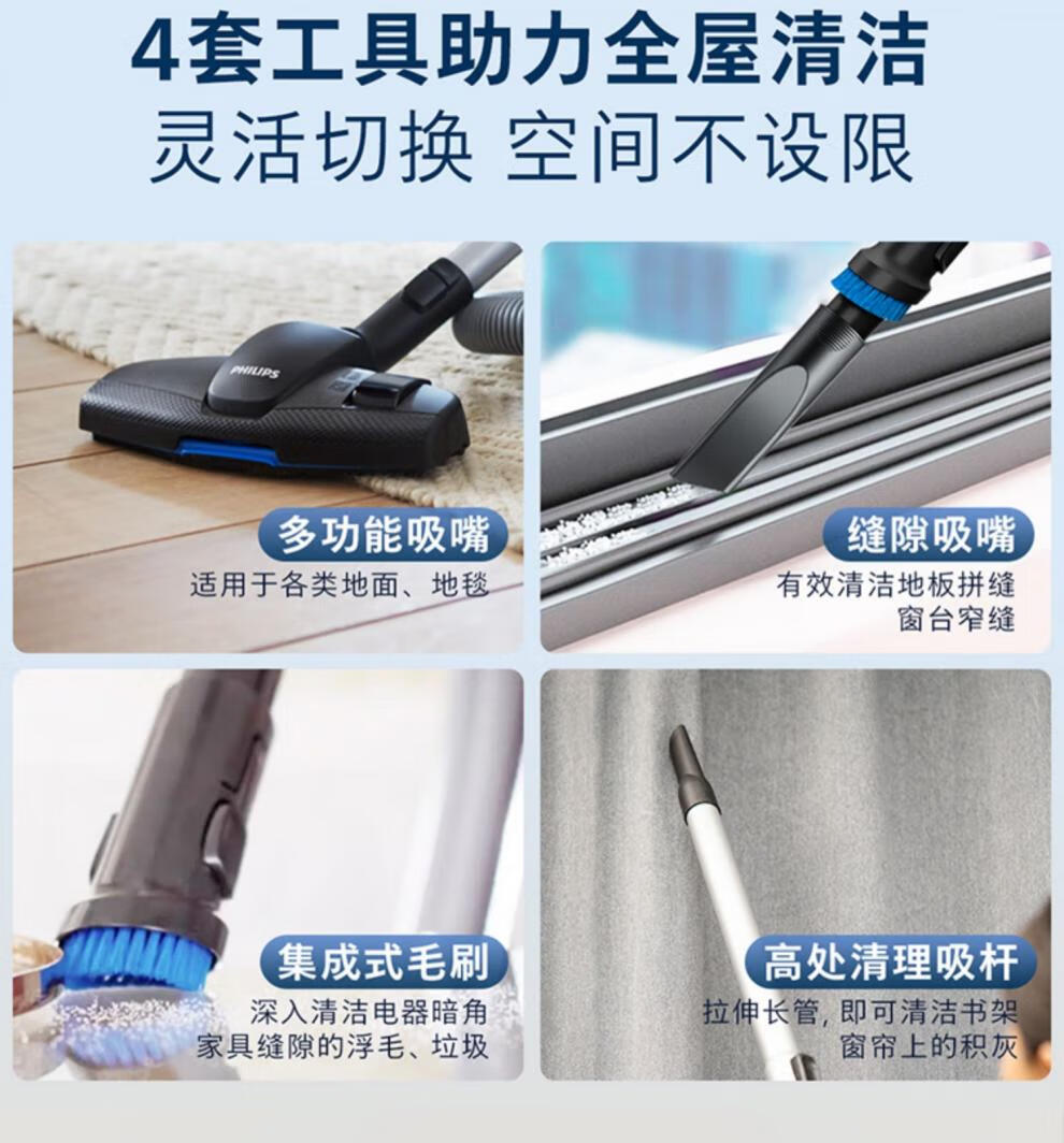 飞利浦(PHILIPS)吸尘器 家用大吸力手持式 大功率地毯沙发 除螨除宠物狗毛 强力吸尘机【尾货机】 FC9735/官方标配+滤网+滤棉【自带除螨刷】