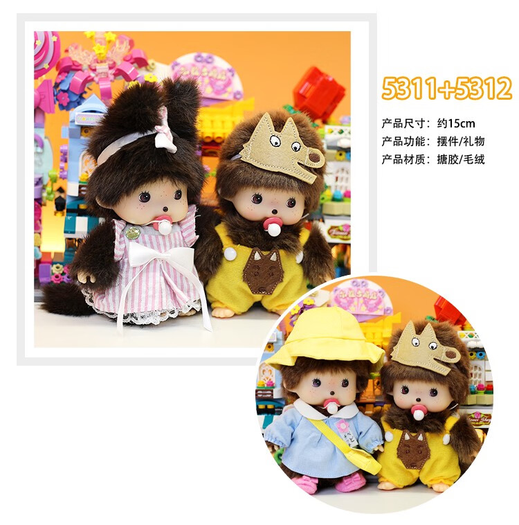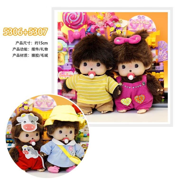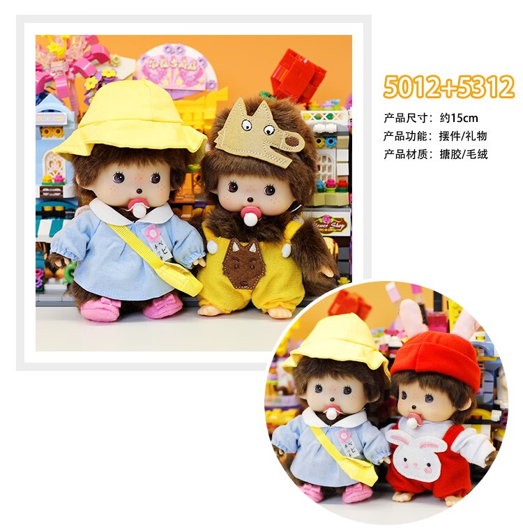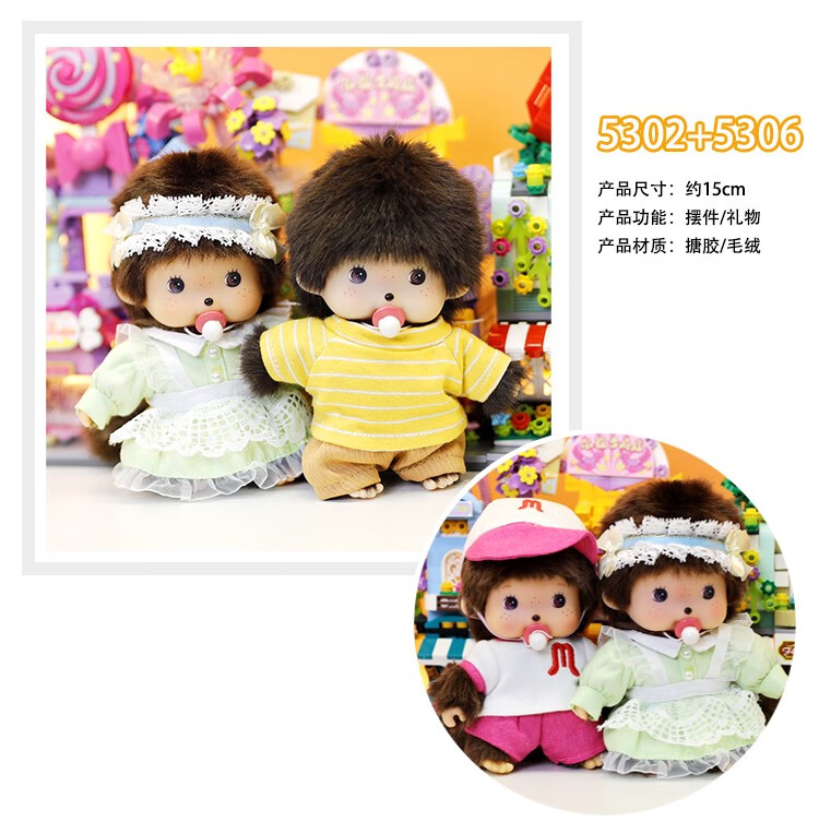 Monchichi-Puppe, Plüsch-Paar, Paar, 15 cm, echte süße Mochichi-Puppe, Geburtstagsgeschenk für Mädchen, Monchichi 5012 + 5312, 0 cm