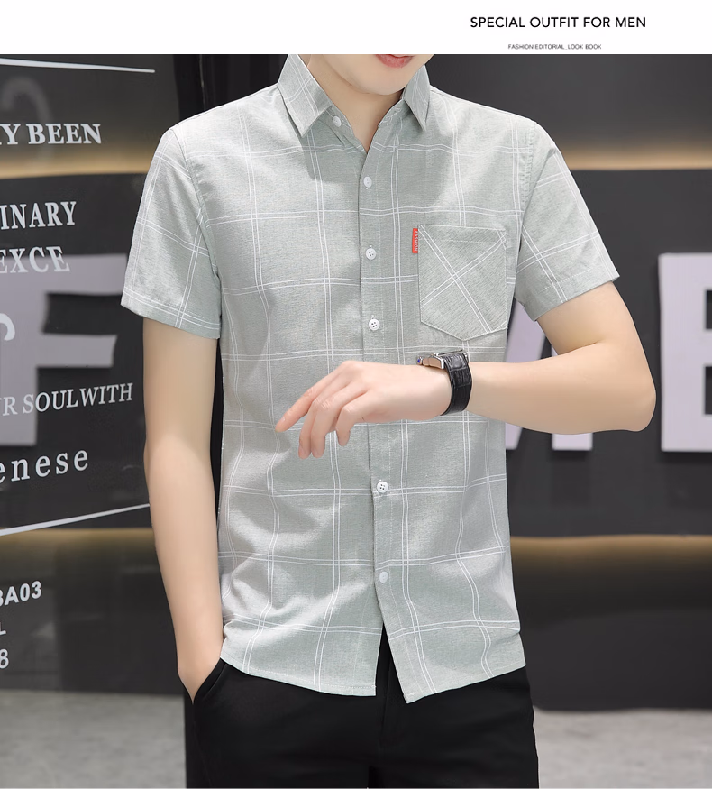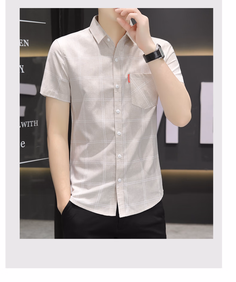 Semir brand men's short-sleeved shirt striped summer new trend versatile Korean version slim casual half 844 Khaki 4XL 160-175Jin Jin is equal to 0.5 kg