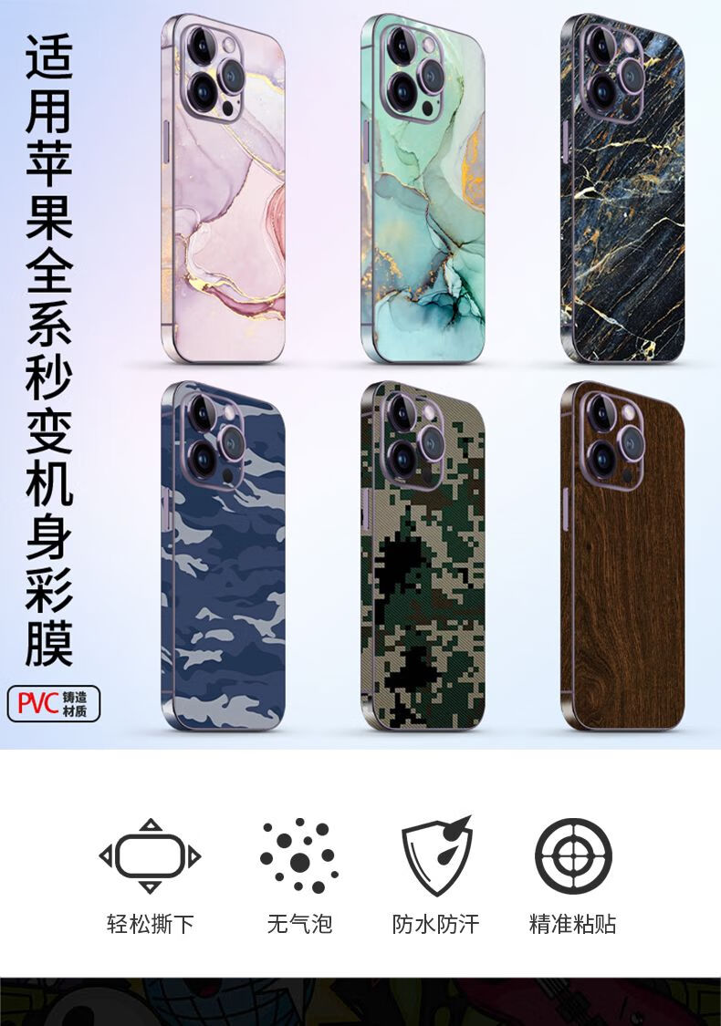 鲸美多适用于苹果14Promax贴纸iPhone13 大理石纹理12背膜 11全包背膜 LX-A5012 iphone12