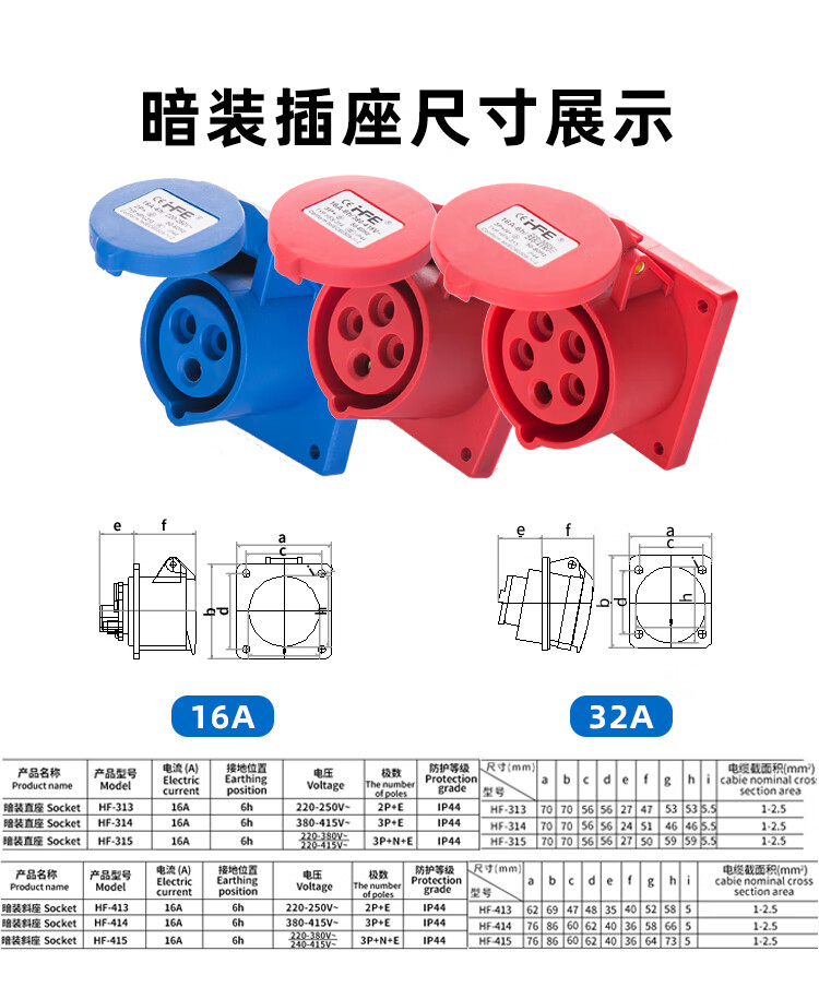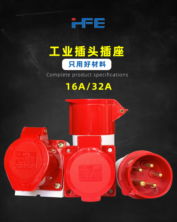 Conector de enchufe y enchufe industrial Hefeng, eléctrico trifásico, 3 núcleos, 4 núcleos, 5 orificios, 16A32A, aviación, resistente al agua y a prueba de explosiones, acoplamiento de enchufe HF-12532A, enchufe expuesto de cinco núcleos de nailon
