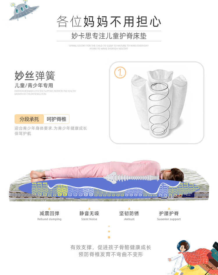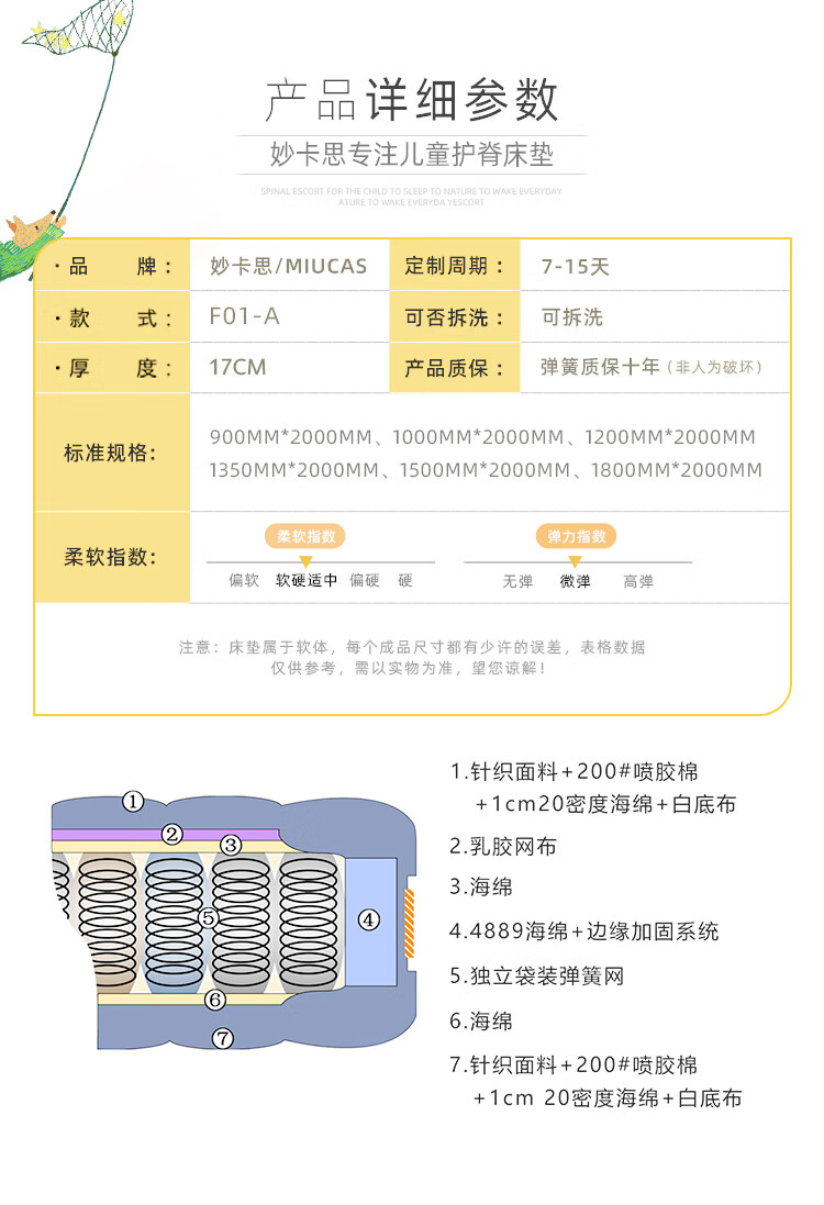 妙卡思 F01-A 袋装弹簧床垫 针织面料可拆洗 软硬适中 睡感舒适 妙卡思F01-A可拆洗床垫 1350*2000