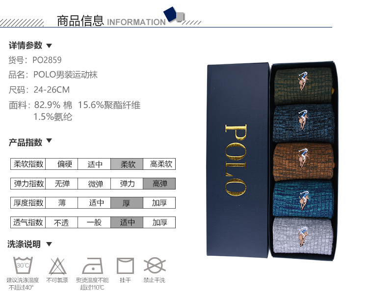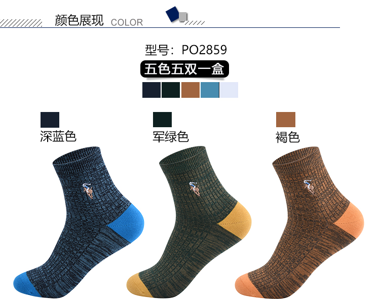 POLO genuine 5 pairs\box socks men's autumn and winter thick cold-proof cotton socks sweat-absorbent and breathable mid-calf running men's socks model 3294 five colors 6 pairs one size fits all 39-45
