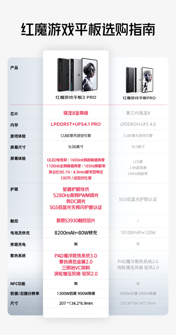 努比亚红魔游戏平板3Pro 9.06英寸OLED电竞屏 骁龙8至尊版 8200mAh电池 国家补贴电竞小平板 24GB+1TB暗夜版
