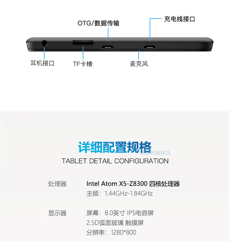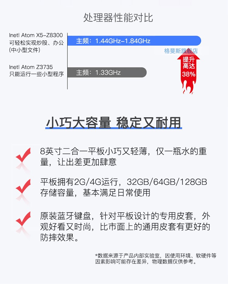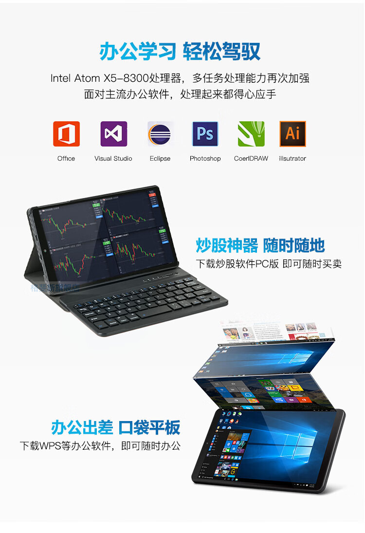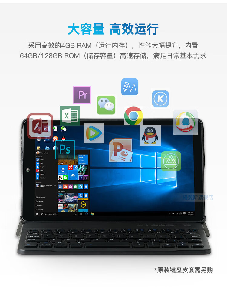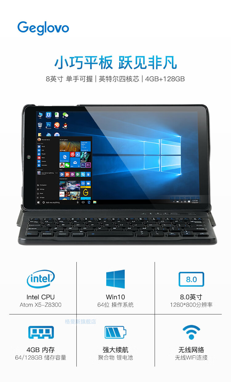 Geglovo 8-Zoll-Windows-Tablet 2-in-1-Notebook, dünner und tragbarer Mini-Handheld-Computer für Win10-System-Büro- und Geschäftsgebrauch, Piano Black 8G+128G offizielles Logo + Tastatur-Ledertasche
