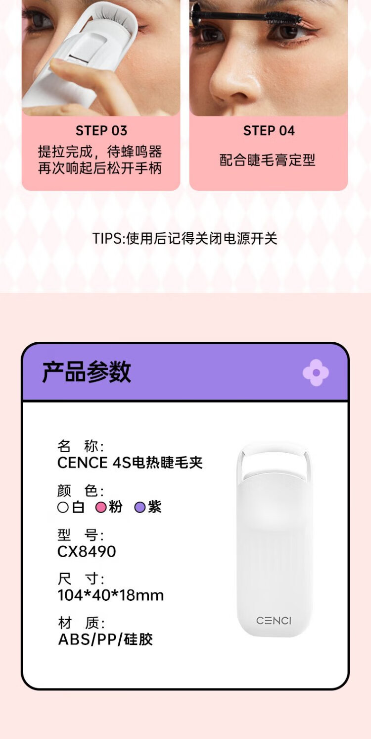 CENCI Electric Heated Eyelash Curler 4s Electric Eyelash Curler Heated Eyelash Styling Tool Holiday Gift for Women