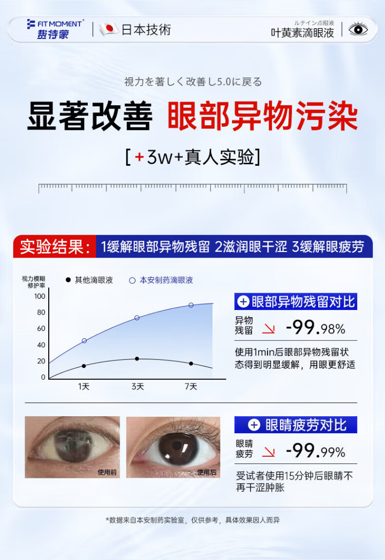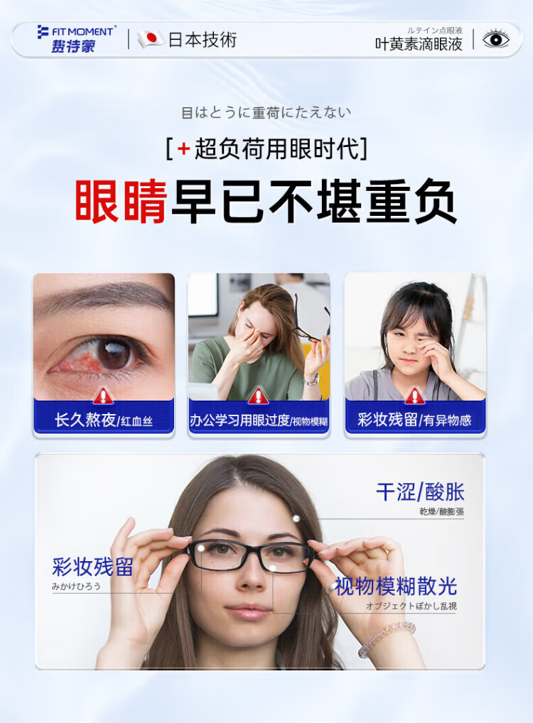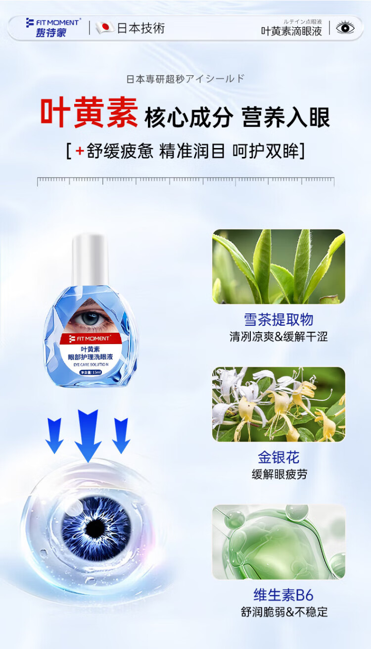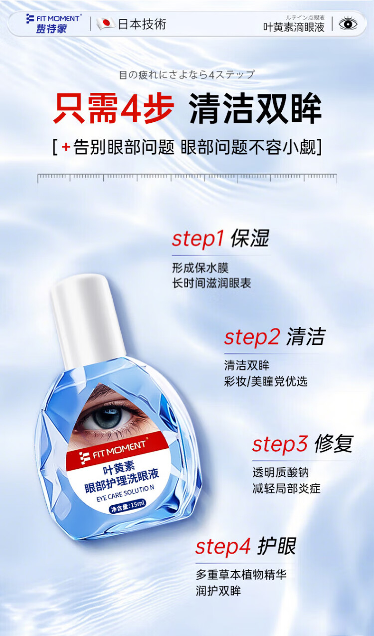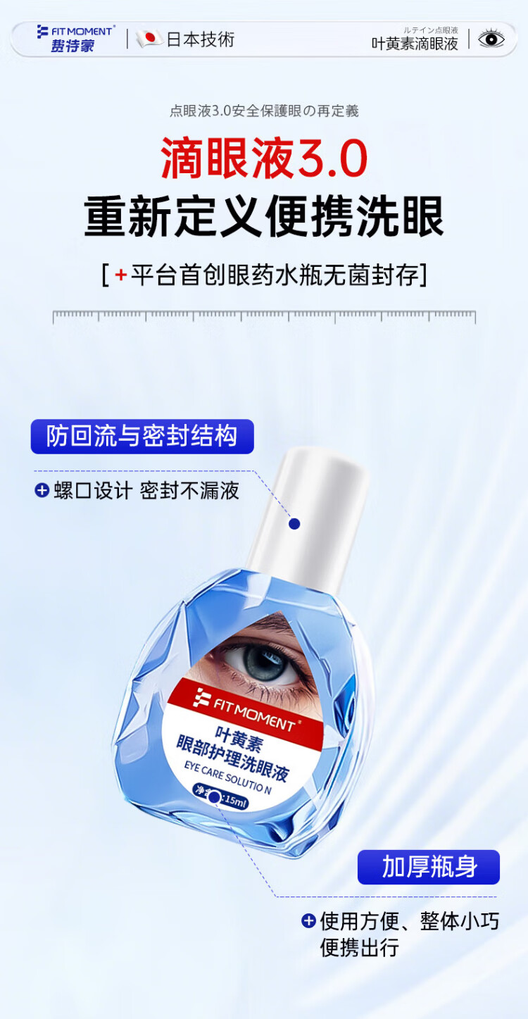 FIT MOMENT Lutein Eye Wash Non-Eye Drops Non-Eye Drops Fatigue Dry Eyes Blurred Vision Fatigue Stay Up Late 3 Bottles