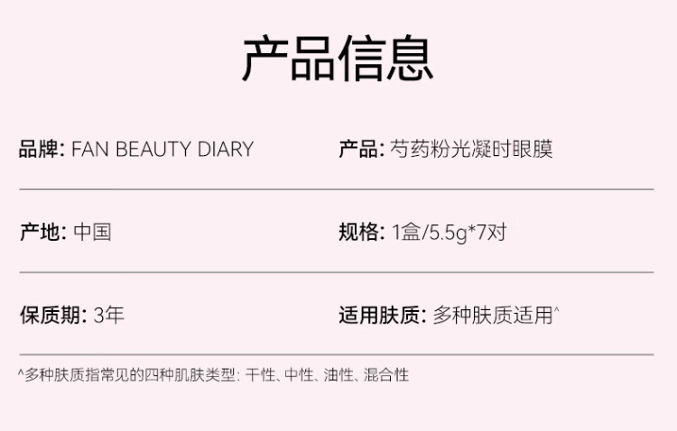 FAN BEAUTY DIARY Fan Bingbing's same peony powder photocoagulation eye mask 5.5g*7 pairs to reduce dark circles and fine lines around the eyes