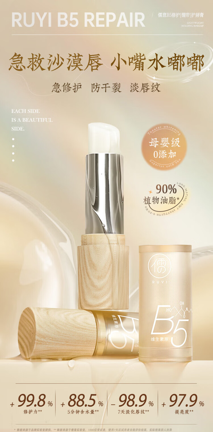 Ruyi (RUYI) Vaseline lip balm for men and women, hydrating, moisturizing, anti-chipping, exfoliating, lightening lip lines, repairing cheilitis