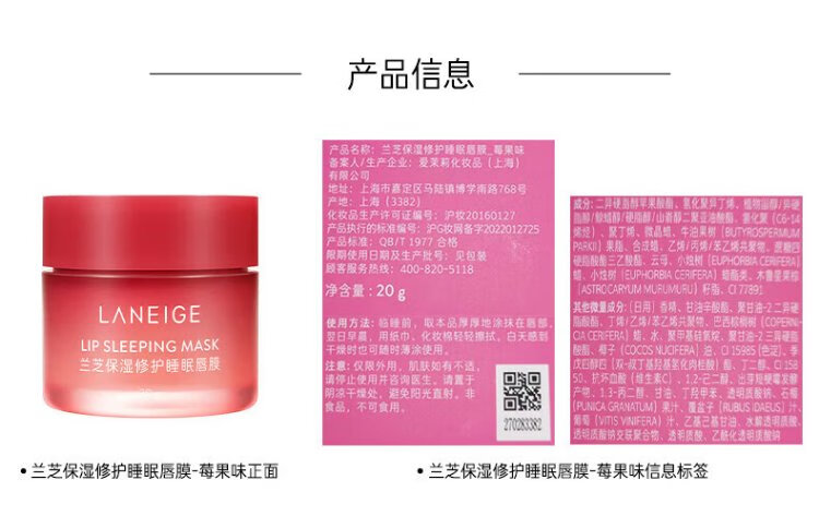 Laneige Lip Mask Berry Flavor 20g Moisturizing, Repairing, Exfoliating, Exfoliating and Lightening Lip Lines Official Authentic Birthday Gift