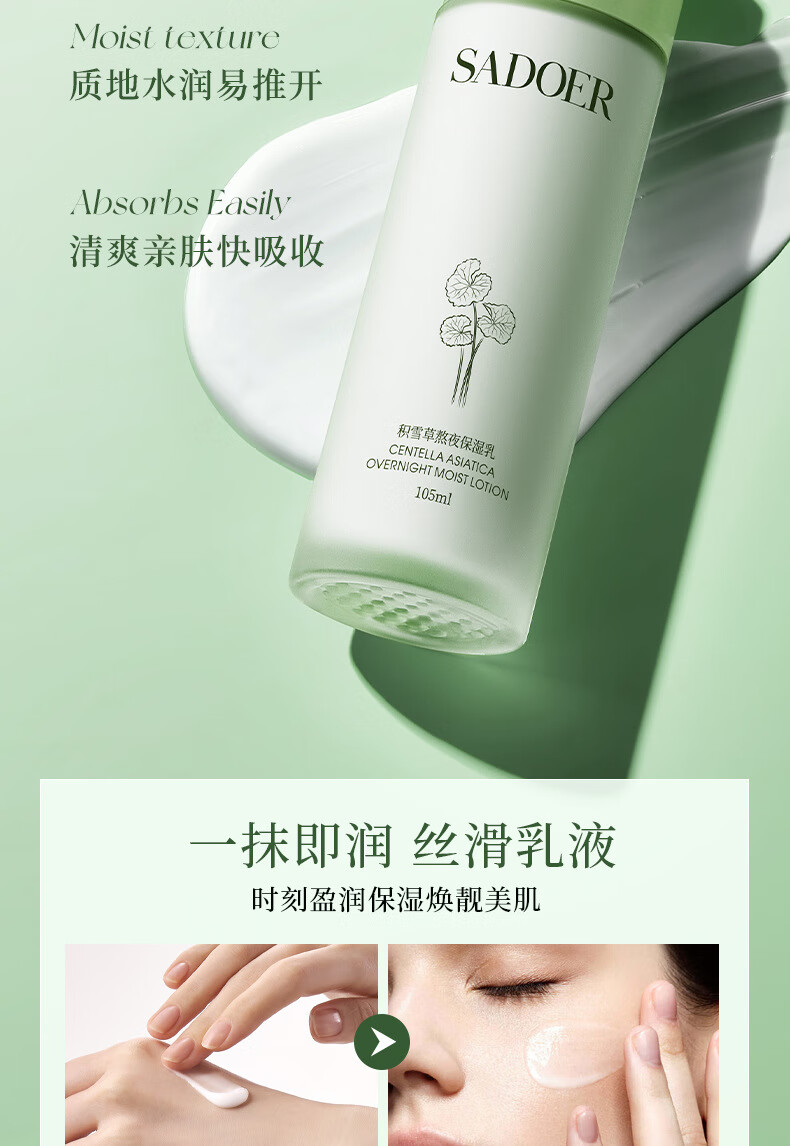 Centella asiatica skin care product four-piece set SADOER brightening skin, hydrating, whitening, moisturizing and nourishing toner 30g facial cream
