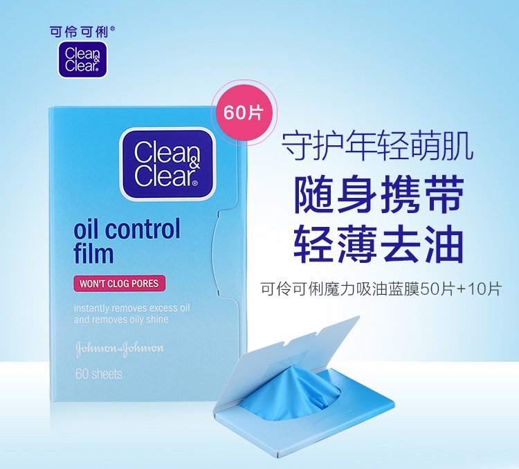 Ke Ling Ke Li Oil Absorbing Blue Mask 50 pieces + 10 pieces Absorb oil and remove oil for men and women's face oil absorbing paper