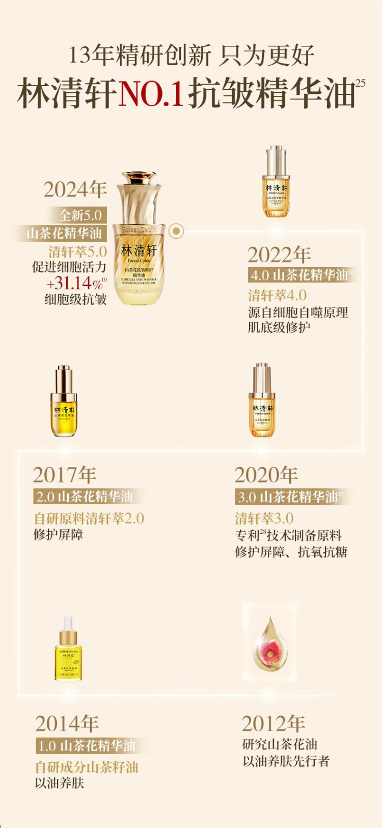 Lin Qingxuan Dad's Sample 5.0 Camellia Essential Oil 50ml Anti-wrinkle Repair Firming Lightening Skin Care Products Gift
