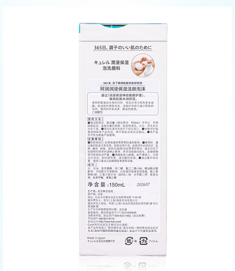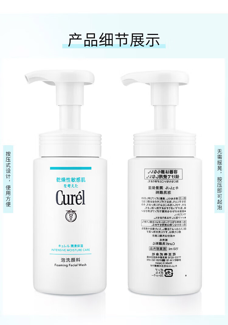 Curel Moisturizing Cleansing Foam 150ml Slightly Acidic Cleansing Amino Acid Facial Cleanser Suitable for Sensitive Skin Unisex