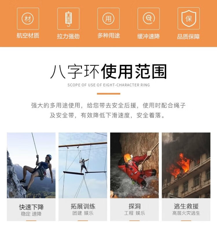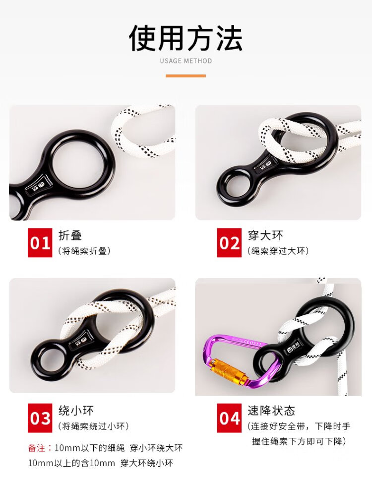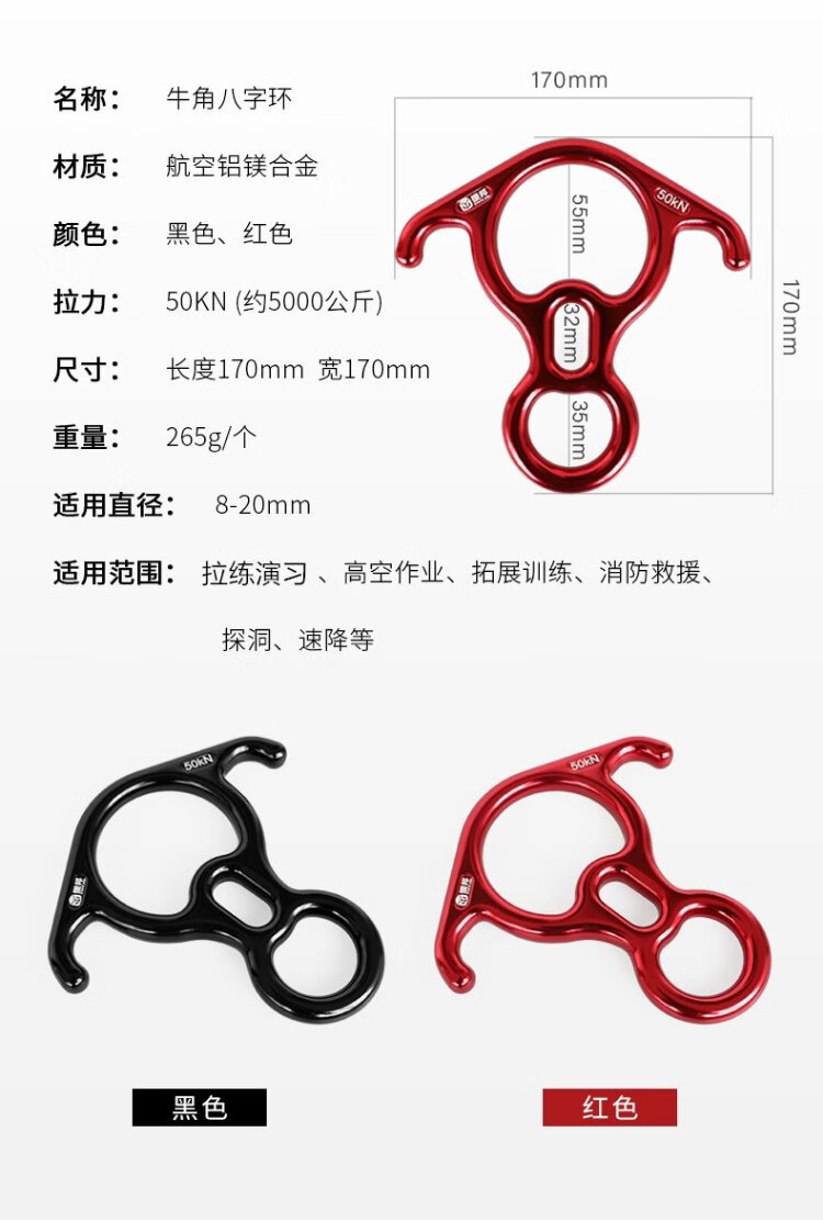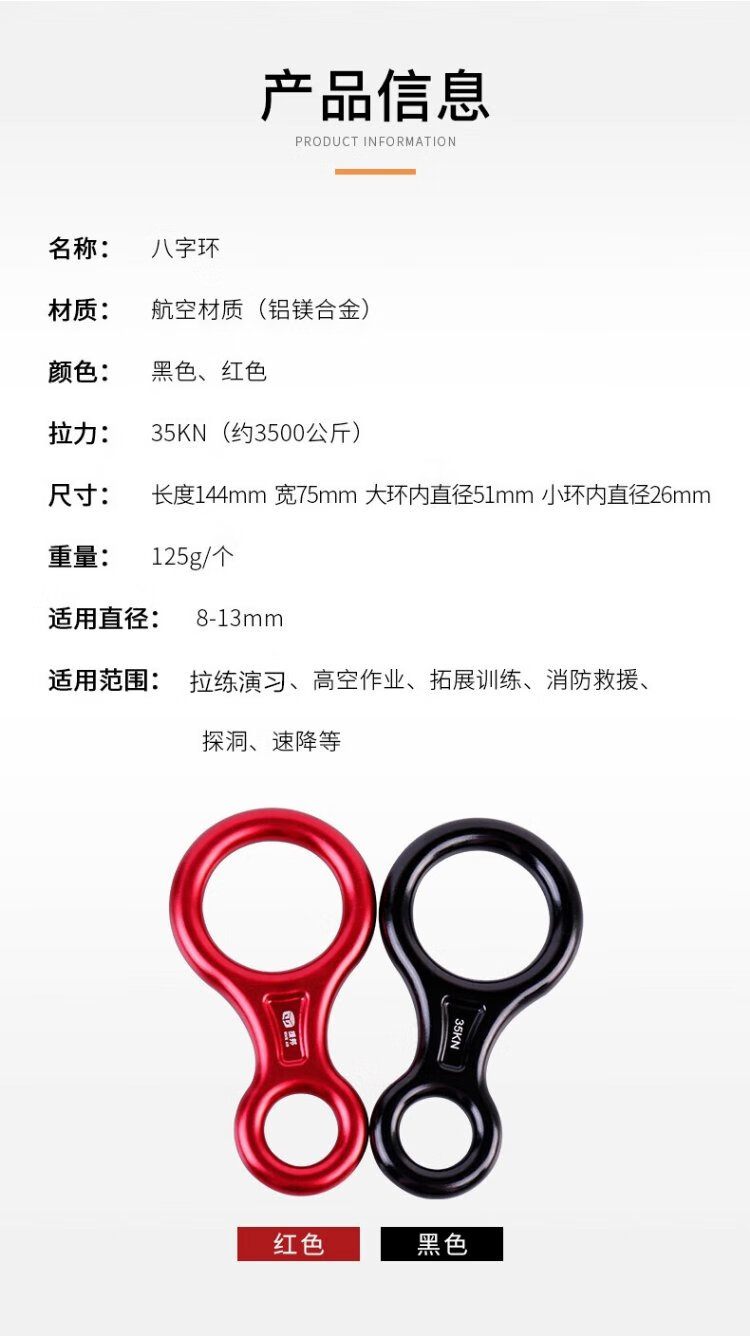 Jingte Jingcang Express 8-shaped ring descender 35KN high-altitude descent device downhill equipment hand-controlled descender speed descending device 8-shaped ring 8-shaped ring (red)