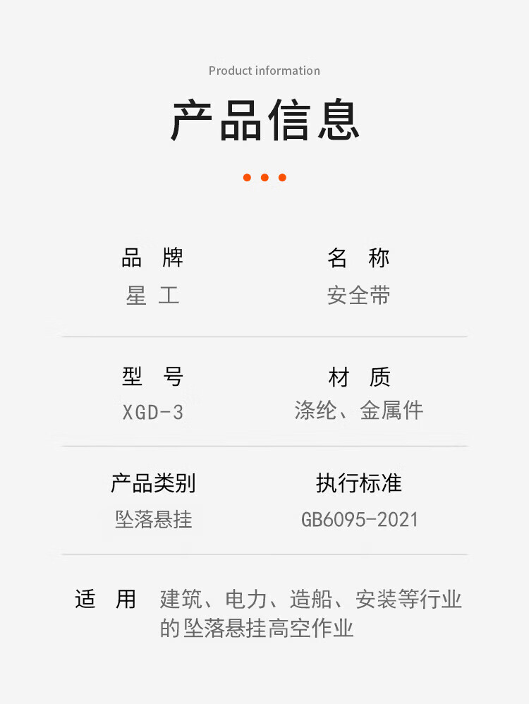Xinggong five-point safety belt double hook buffer bag high-altitude work safety rope national standard full-body anti-fall safety belt XGD-3