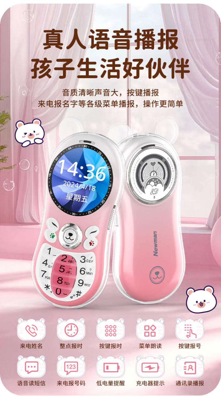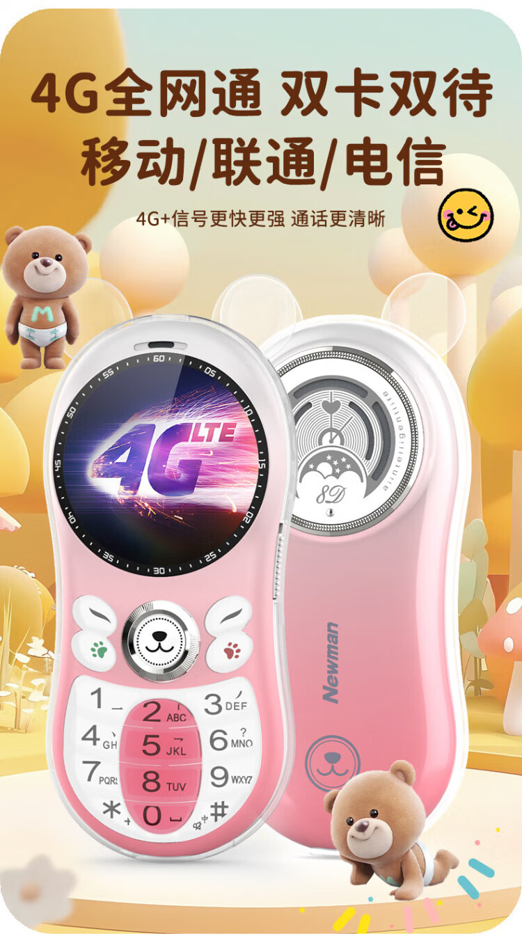 Newman Q8 mini mobile phone for students to detoxify from Internet addiction. 4G full network connection without games. Accurate positioning. Ultra-thin spare button mobile phone for children, middle and high school students. Sakura pink.