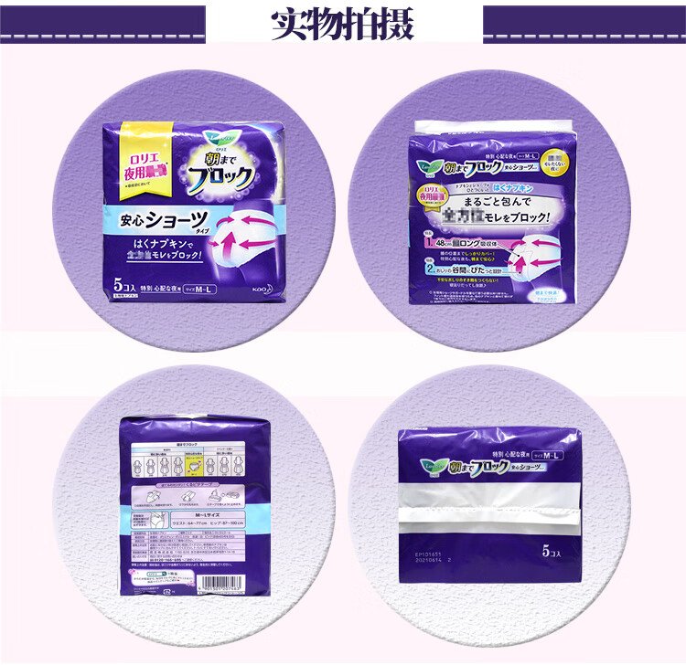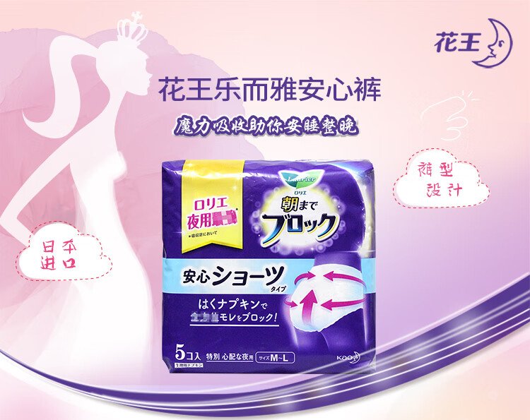 Kao's sleeping pants, sanitary napkins for night use, 5 pieces, imported Leerya sleeping pants, menstrual napkins, menstrual napkins (size M-L), breathable