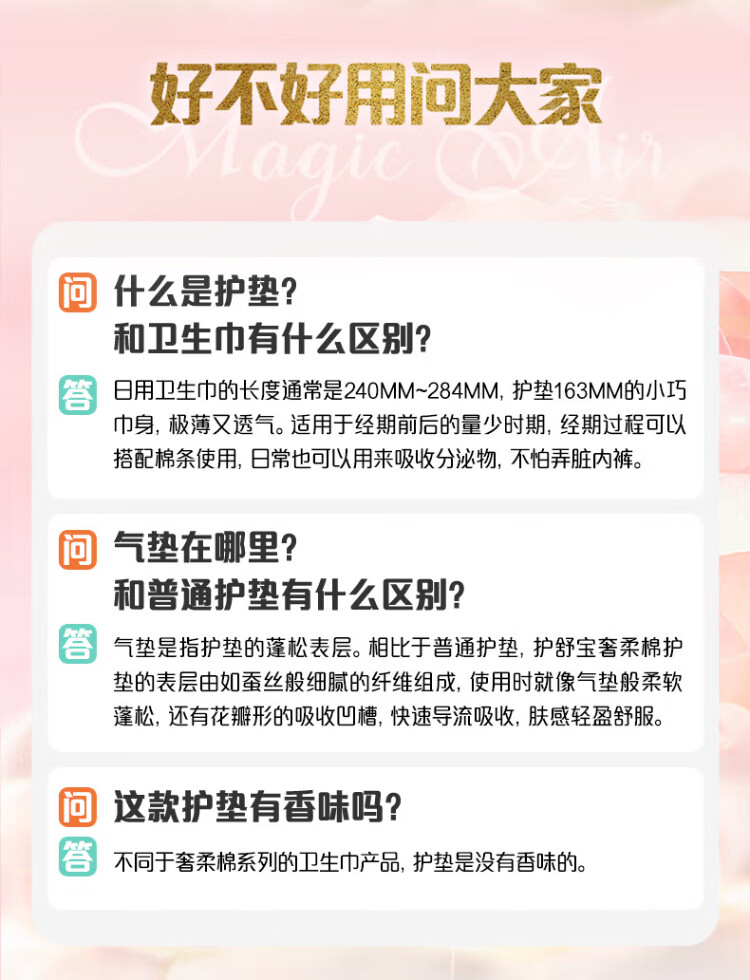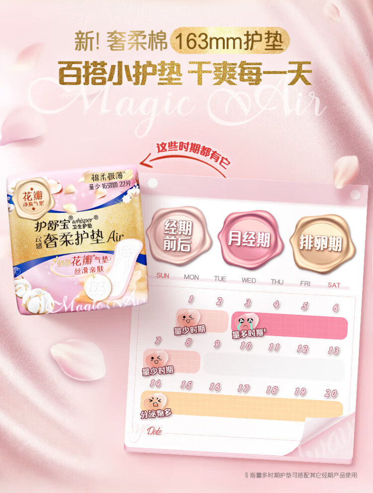 Hushubao luxury soft cotton air cushion sanitary napkin with small amount of daily use 163mm 66 pieces OCC official flagship