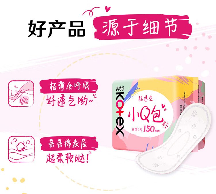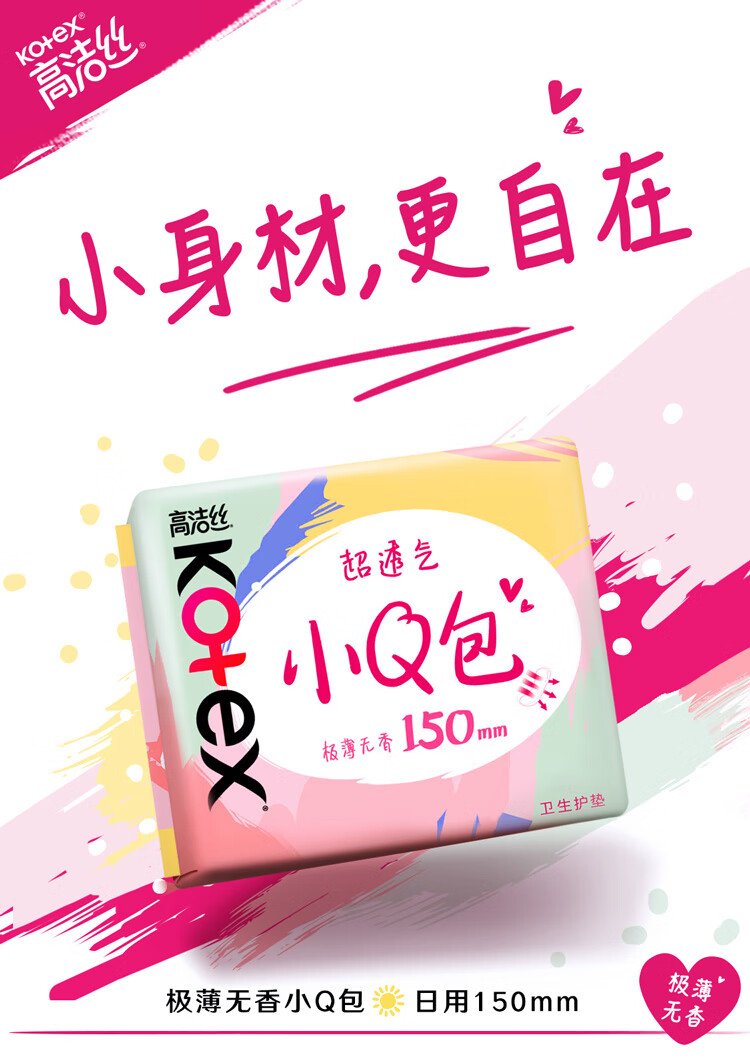 高洁丝【柔滑呵护】少女肌透气小Q包护垫150mm40片日用卫生巾京东自营