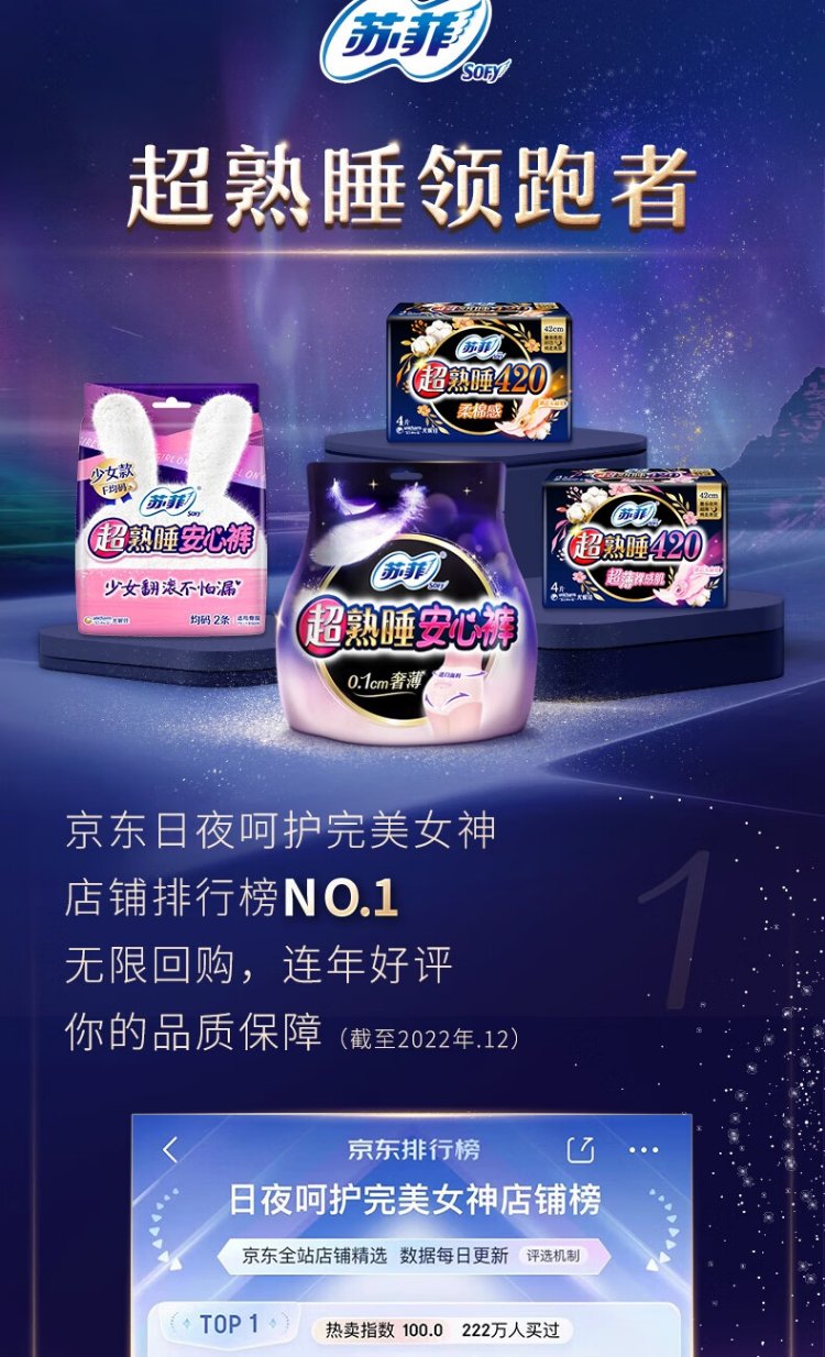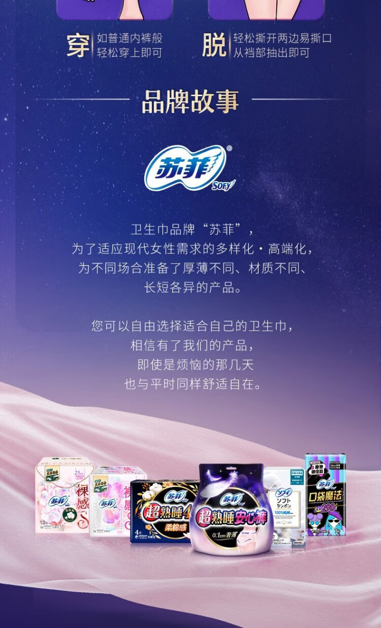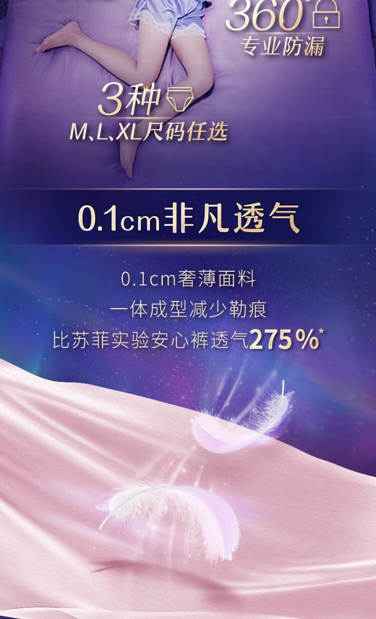 Sophie ultra-thin 0 rubber band ultra-sleep safety pants L size 5 pairs of sleep pants night use sanitary napkins self-operated night safety pants
