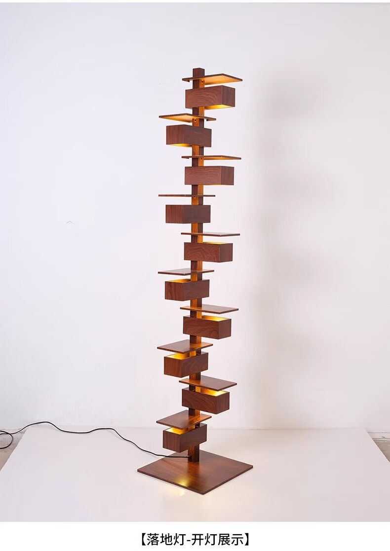 Zhongshuai Flowing Water Villa Floor Lamp Designer Simple Living Room Imitation Wood Grain Light and Shadow Art Ornaments Decorative Lamp Flowing Water Floor Lamp Black