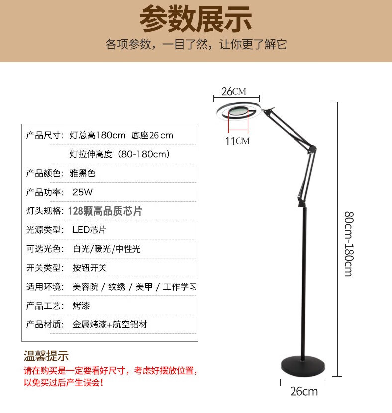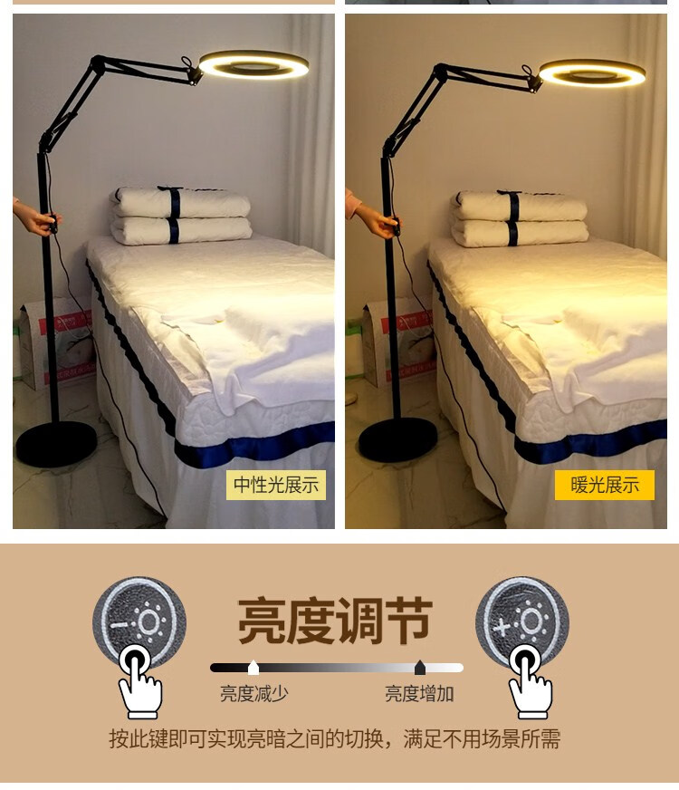 枫岚情 FENGLANQ纹绣灯美容灯美甲美睫纹眉落地灯110VLED照脸睫毛纹身工作灯 白色16瓦双色配放大镜