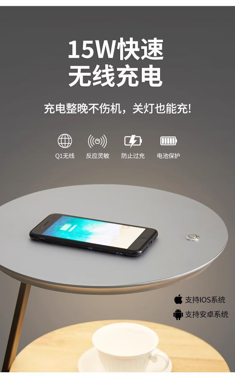 Zhong Shuai's bedroom multifunctional bedside table lamp cabinet lamp floor-standing atmosphere lamp retro light luxury master bedroom wireless charging integrated walnut color + walnut infinite dimming + wireless charging