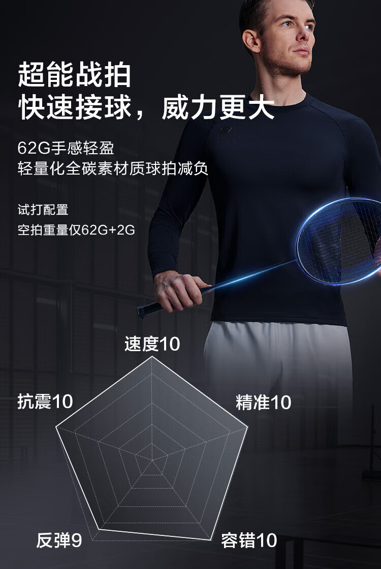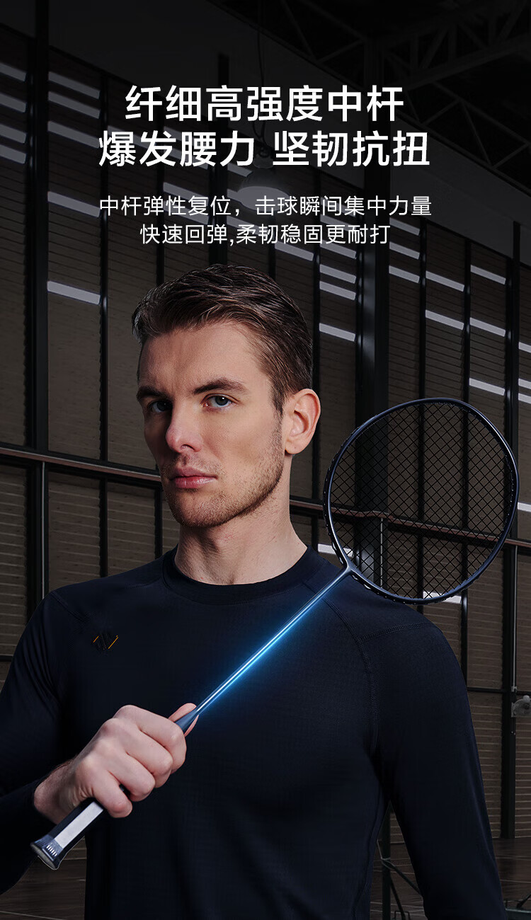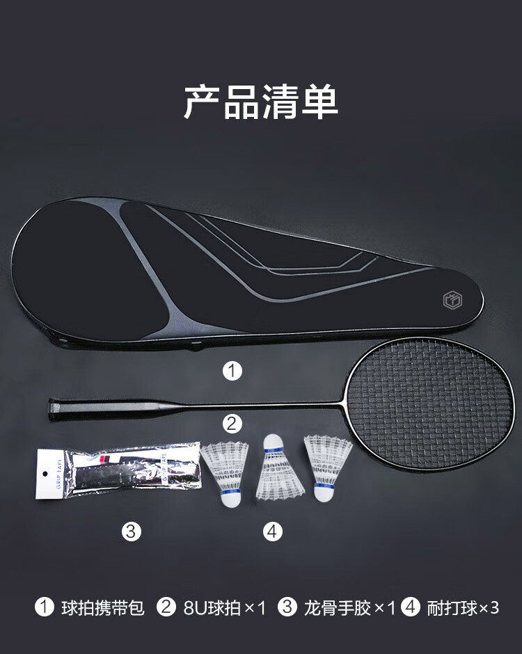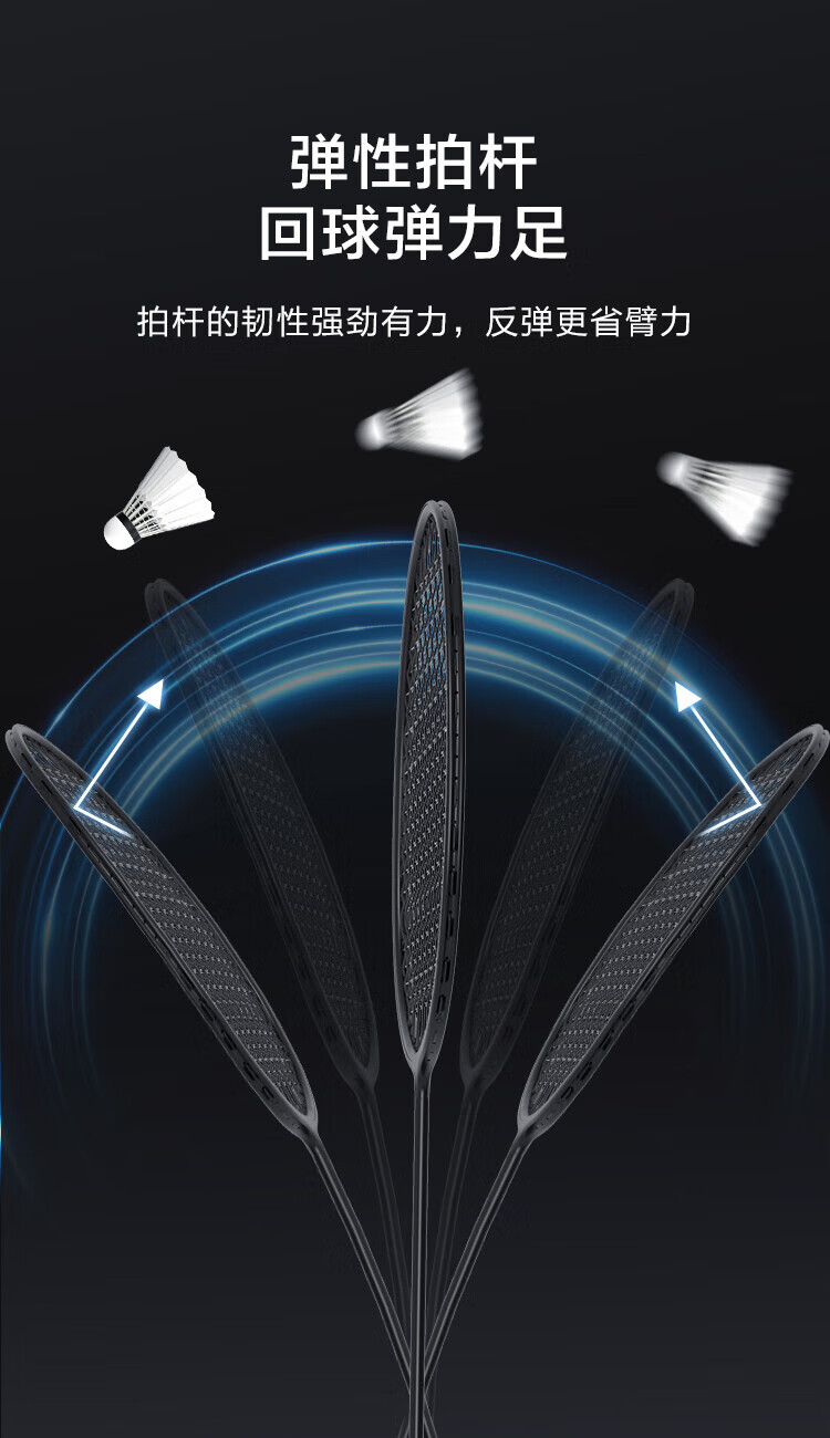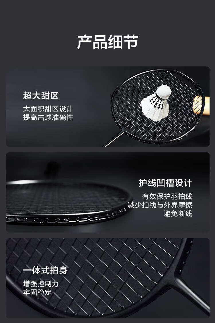 京东京造 8U小黑拍 超轻全碳素羽毛球拍单拍 运动训练赠球手胶