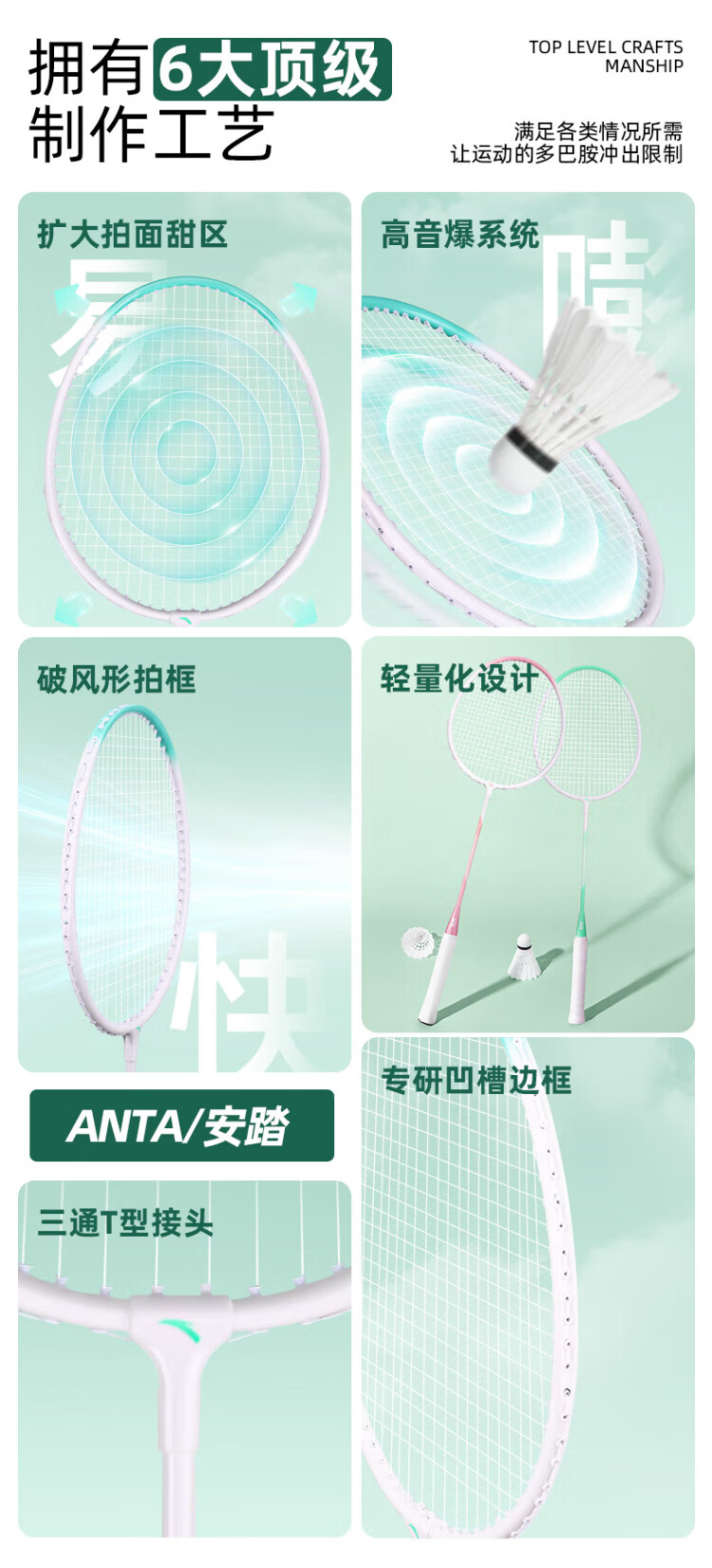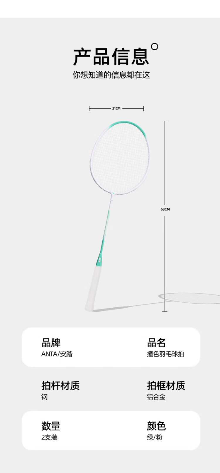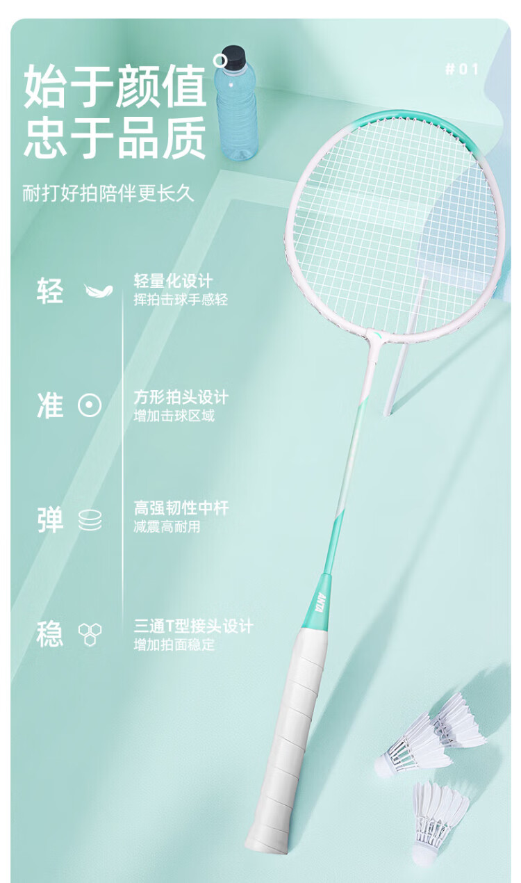 安踏(ANTA)羽毛球拍对拍铝合金深凹槽超轻耐打训练成人儿童学生羽拍621-3