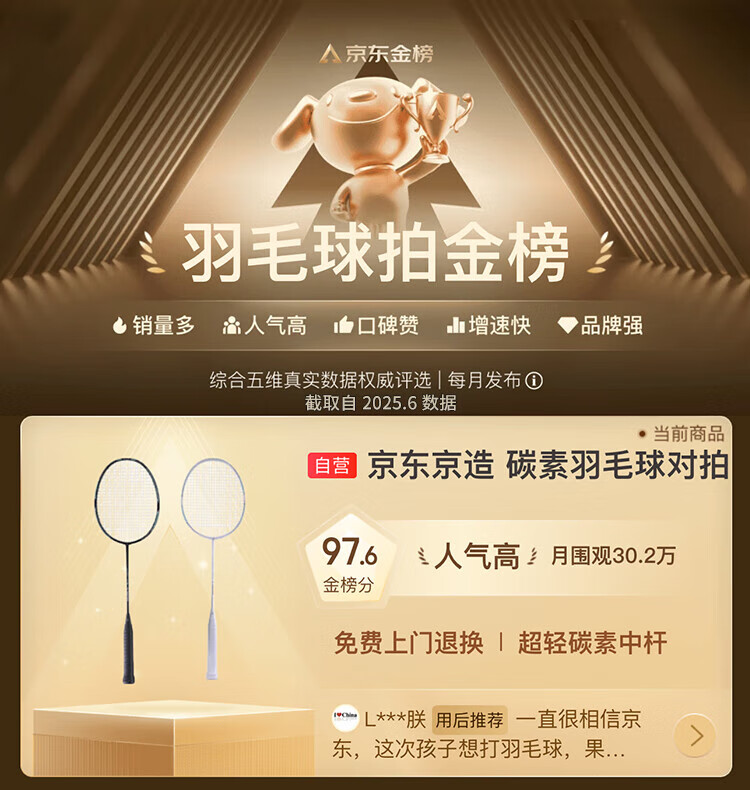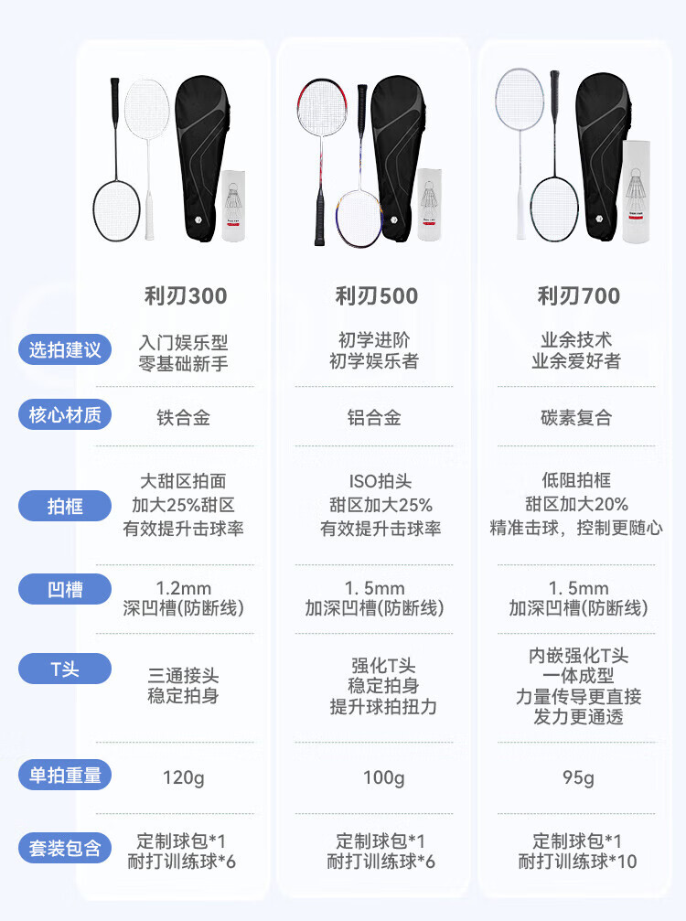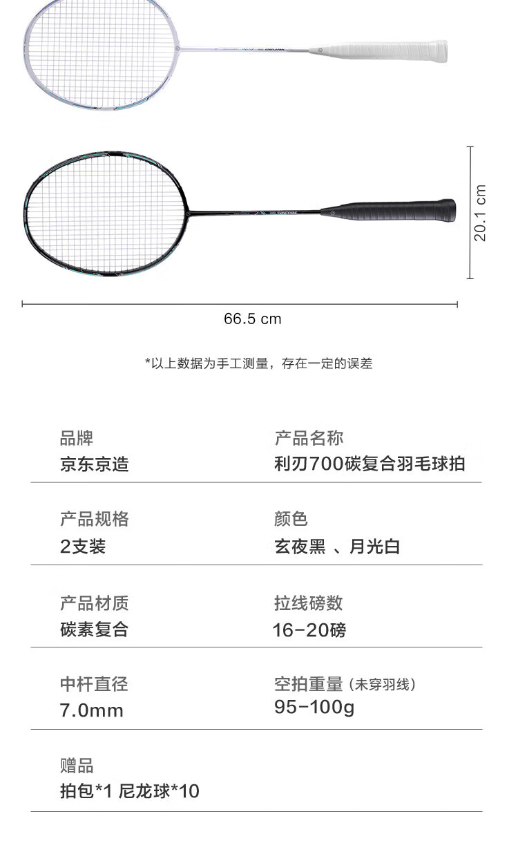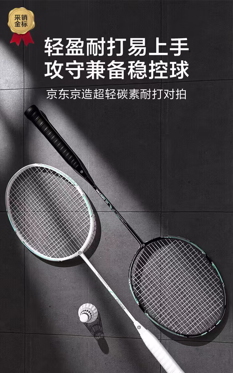京东京造 利刃700碳素羽毛球拍对拍 耐打超轻已穿线 赠拍包+10球