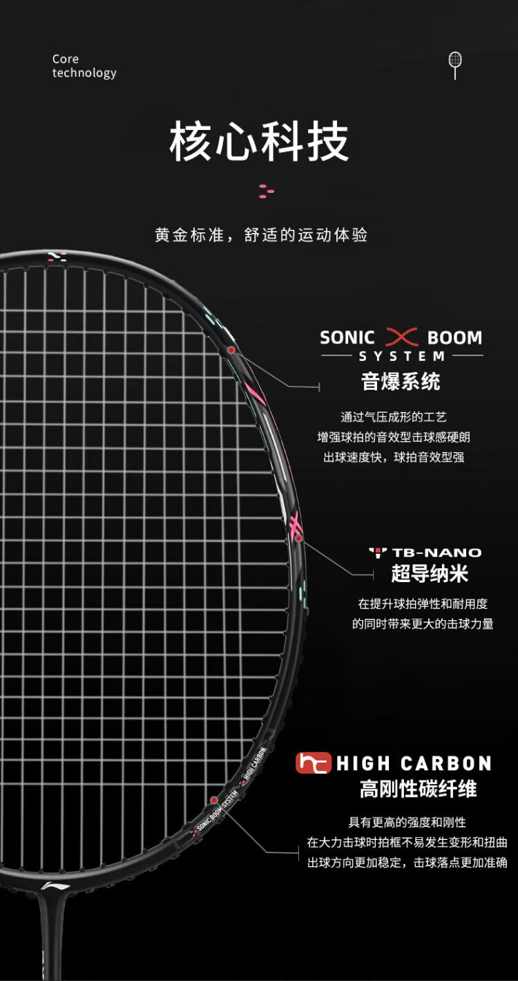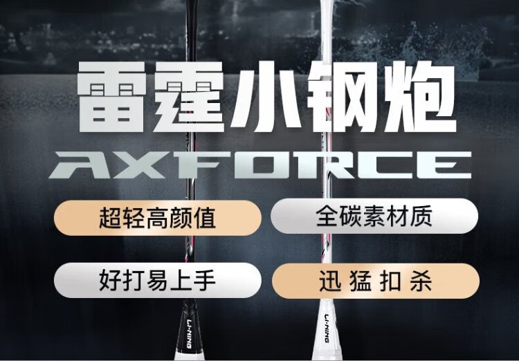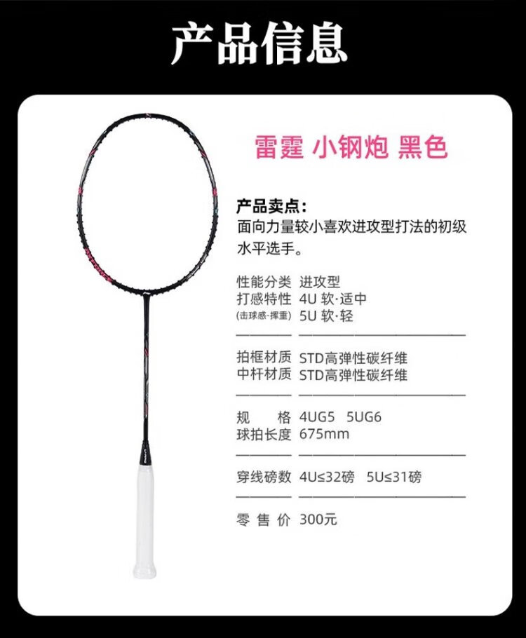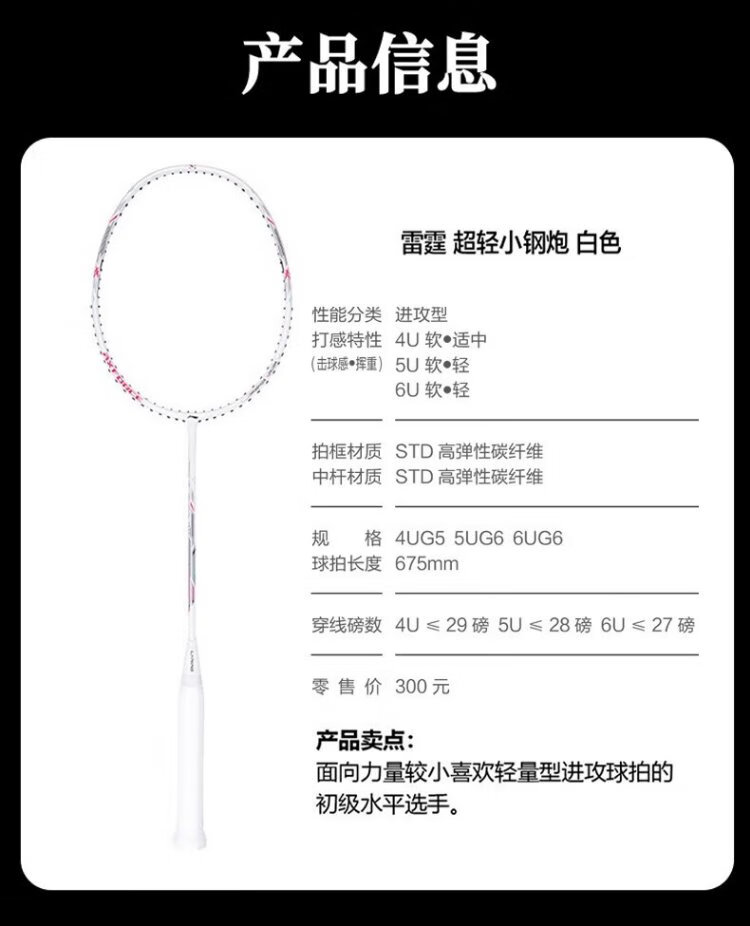 李宁(LI-NING)羽毛球拍雷霆小钢炮黑色全碳素专业进攻型单拍4U已拉线AYPT307-4