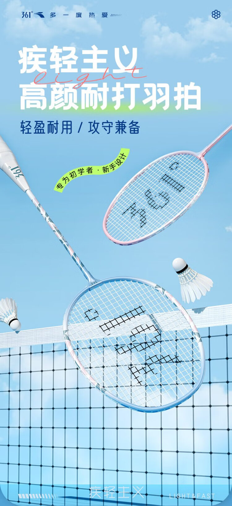 361°羽毛球拍对拍入门款套装超轻耐打训练比赛成人学生双拍