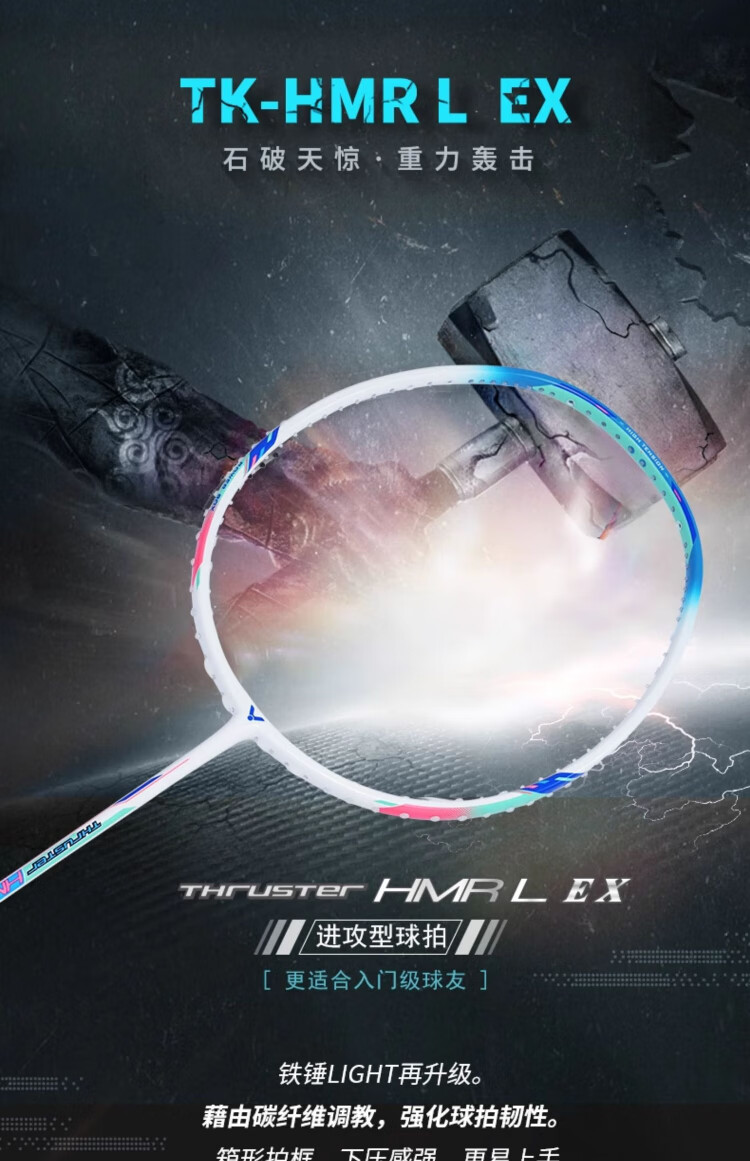 威克多胜利黄雅琼全碳素球拍小铁锤TK-HMRL AM珍珠白5U已穿线送手胶单拍
