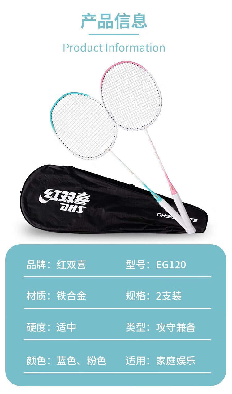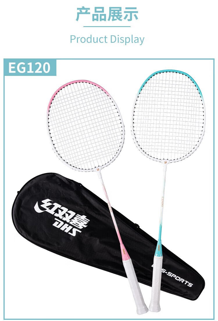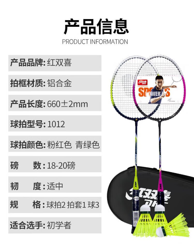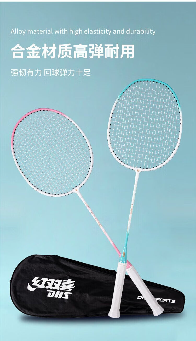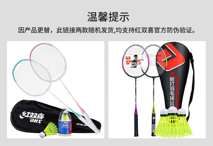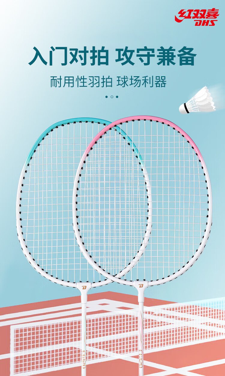 红双喜(DHS)羽毛球拍对拍套装含球训练比赛成人儿童学生防磨羽拍2支双拍