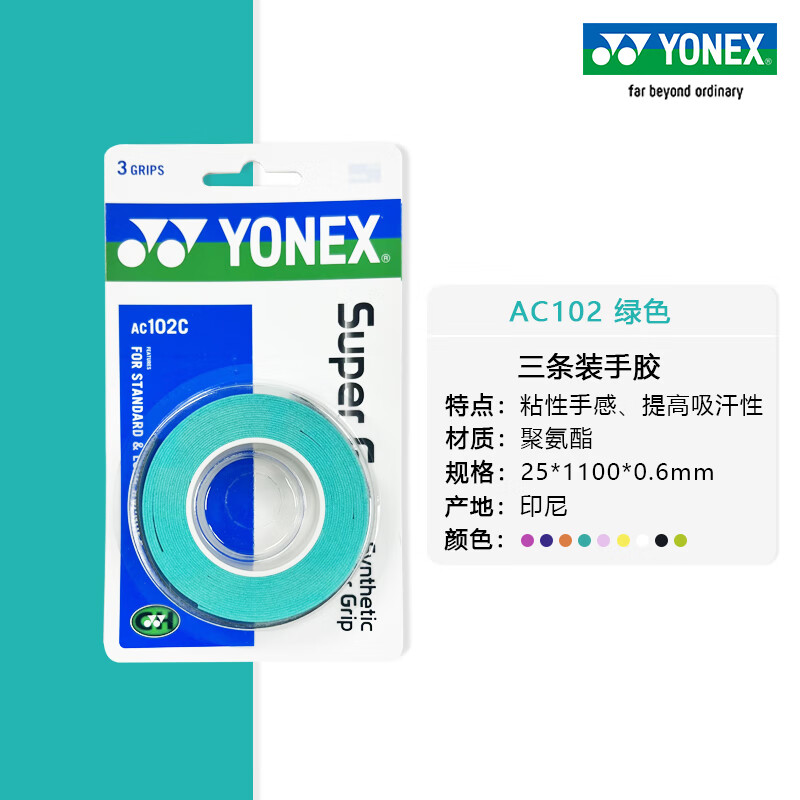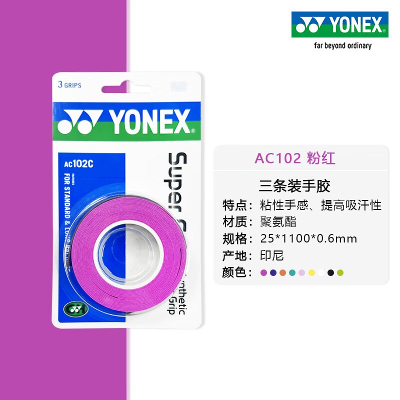 Yonex Гель для рук Yonex AC102C, три упаковки, ракетка для бадминтона, теннисная ракетка, ремешок с ручкой, клей, нескользящий, впитывающий пот гель для рук AC102C, белый, 3 упаковки, индонезийский 1 коробка, 3 упаковки