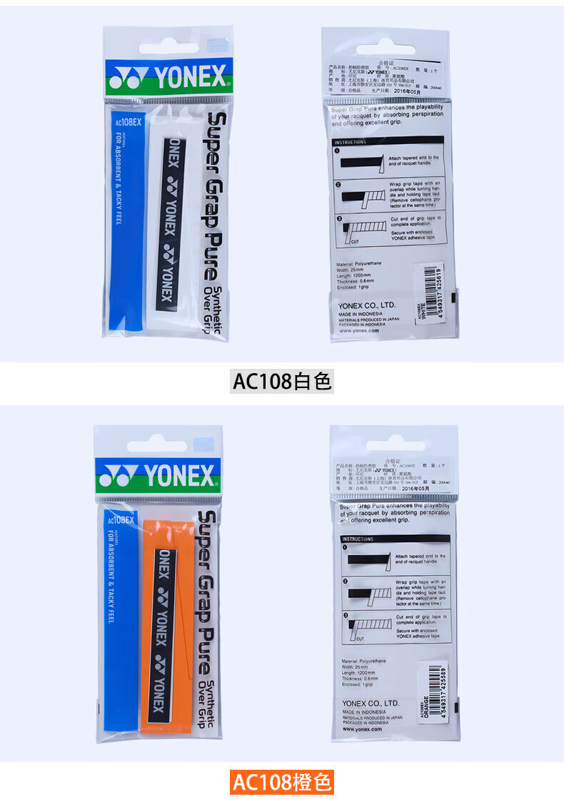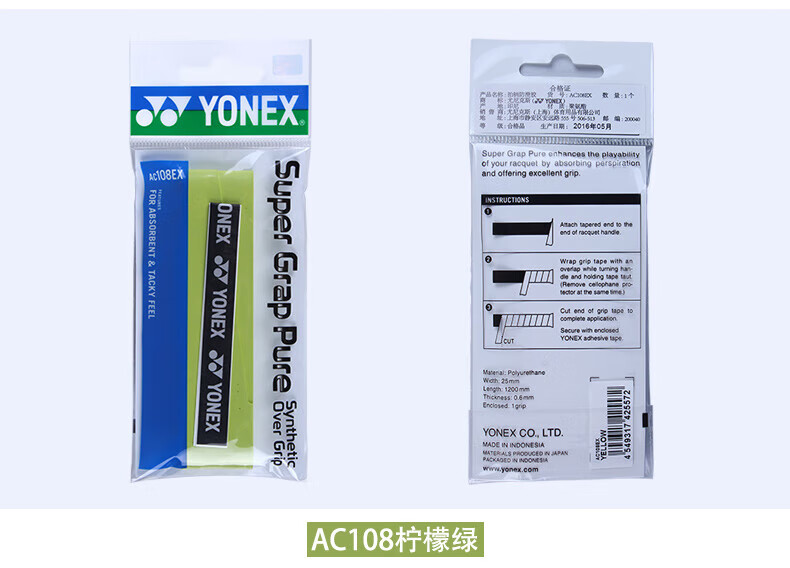 YONEX, впитывающий пот и нескользящий гель для рук с ракеткой для бадминтона, противоскользящий, впитывающий пот гель для рук AC108EX, отдельная упаковка AC108EX, белая отдельная упаковка, впитывающий пот и противоскользящий