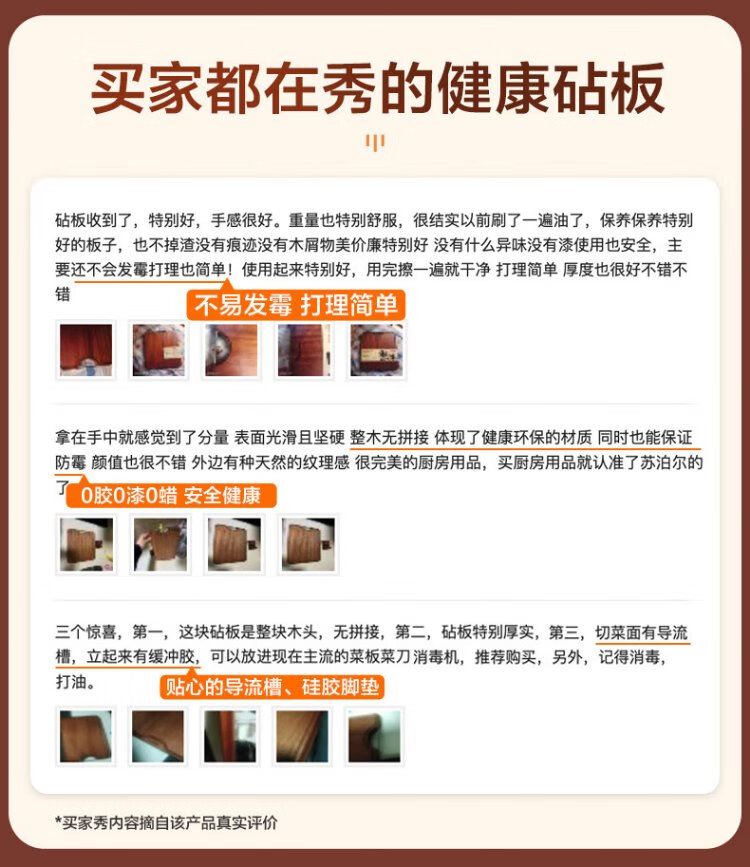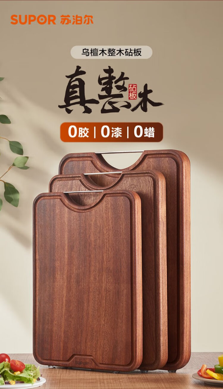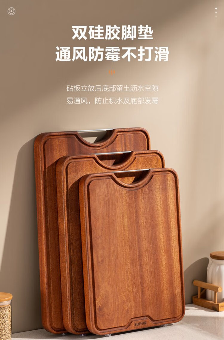 苏泊尔SUPOR 乌檀木整木菜板实木加厚加大切菜板实木砧板W402825AB1