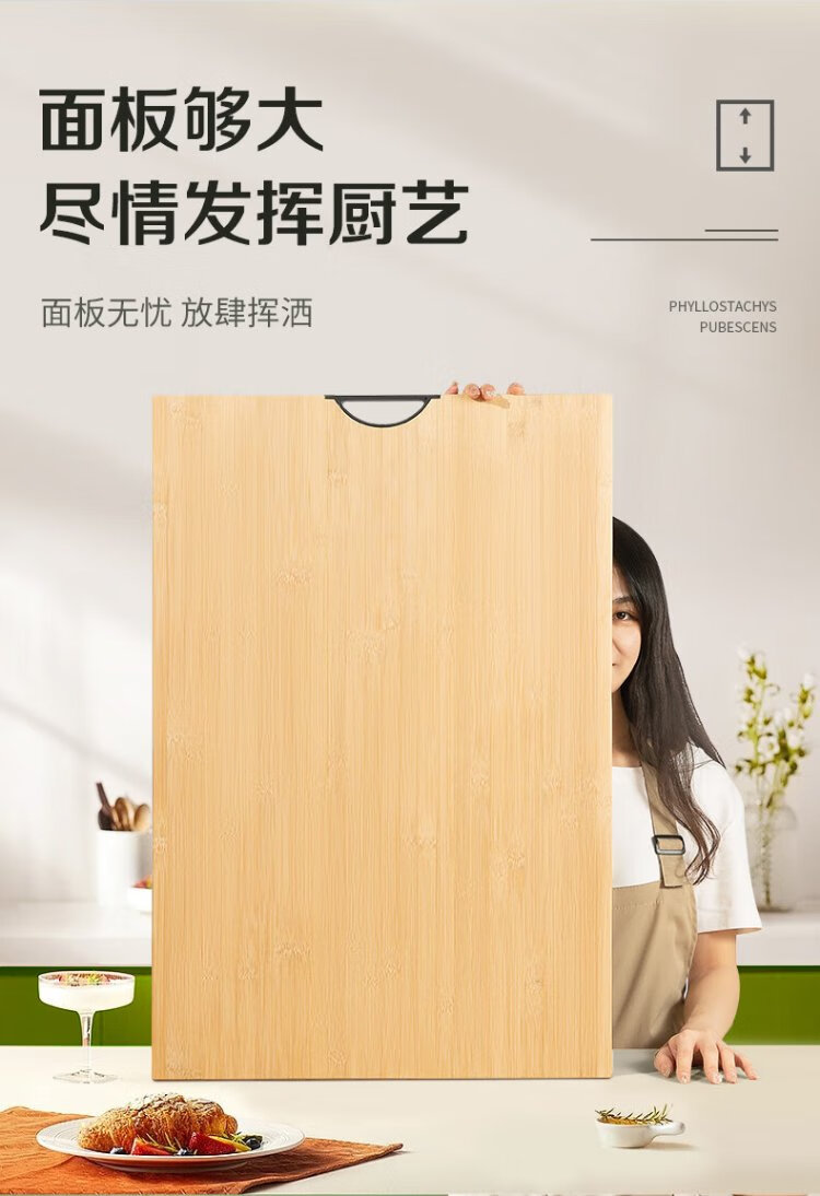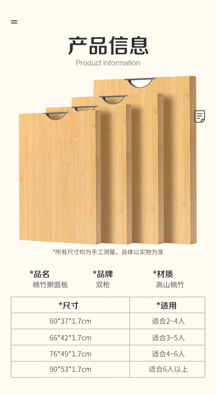 双枪天然竹砧板切菜板无漆无蜡原竹案板大号擀面板66*42*1.7cm