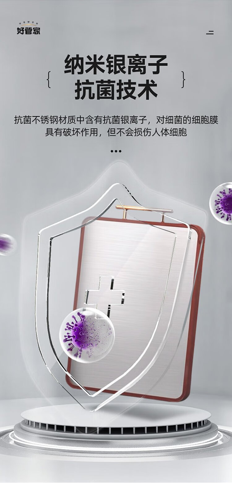 好管家菜板乌檀木+不锈钢双面砧板切菜板抗菌家用案板40.6*30.6*2.6