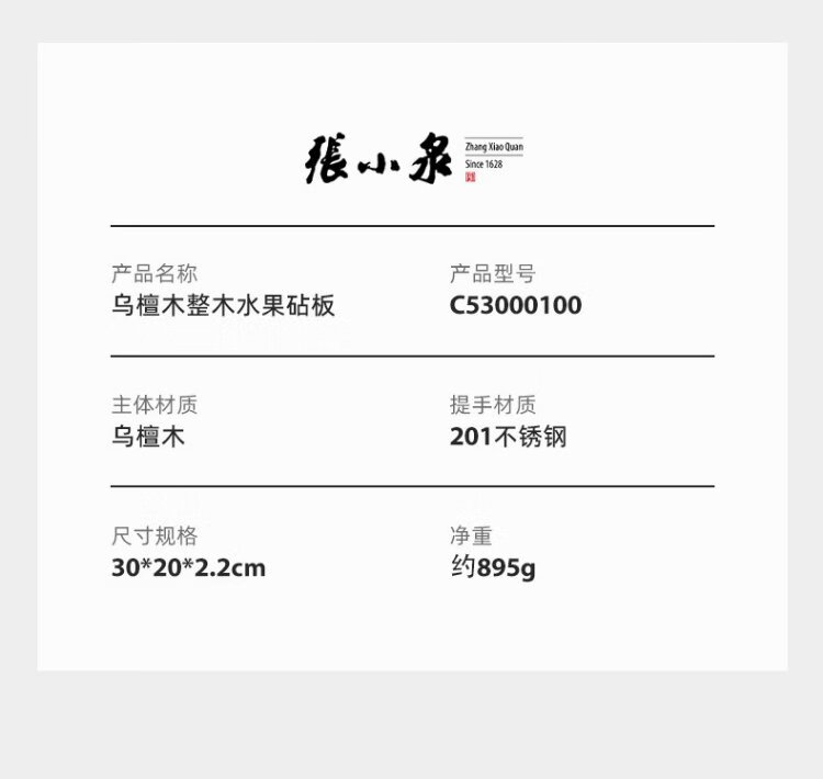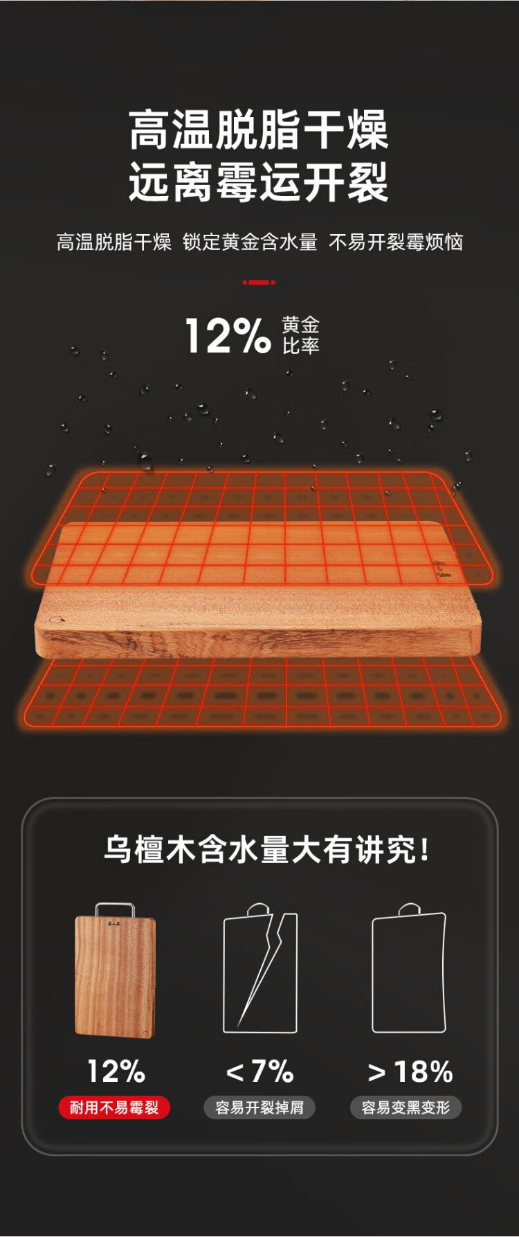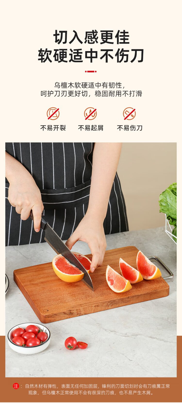 Zhang Xiaoquan planche à découper planche à découper planche à fruits rectangulaire planche à découper domestique épaissie planche collante jetée à légumes ébène 30*20*2.2 cm