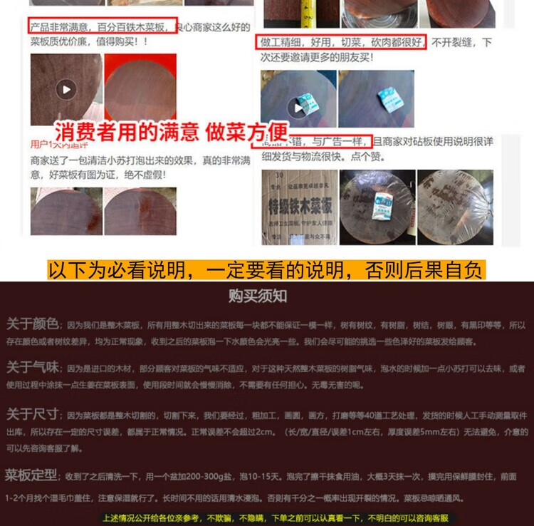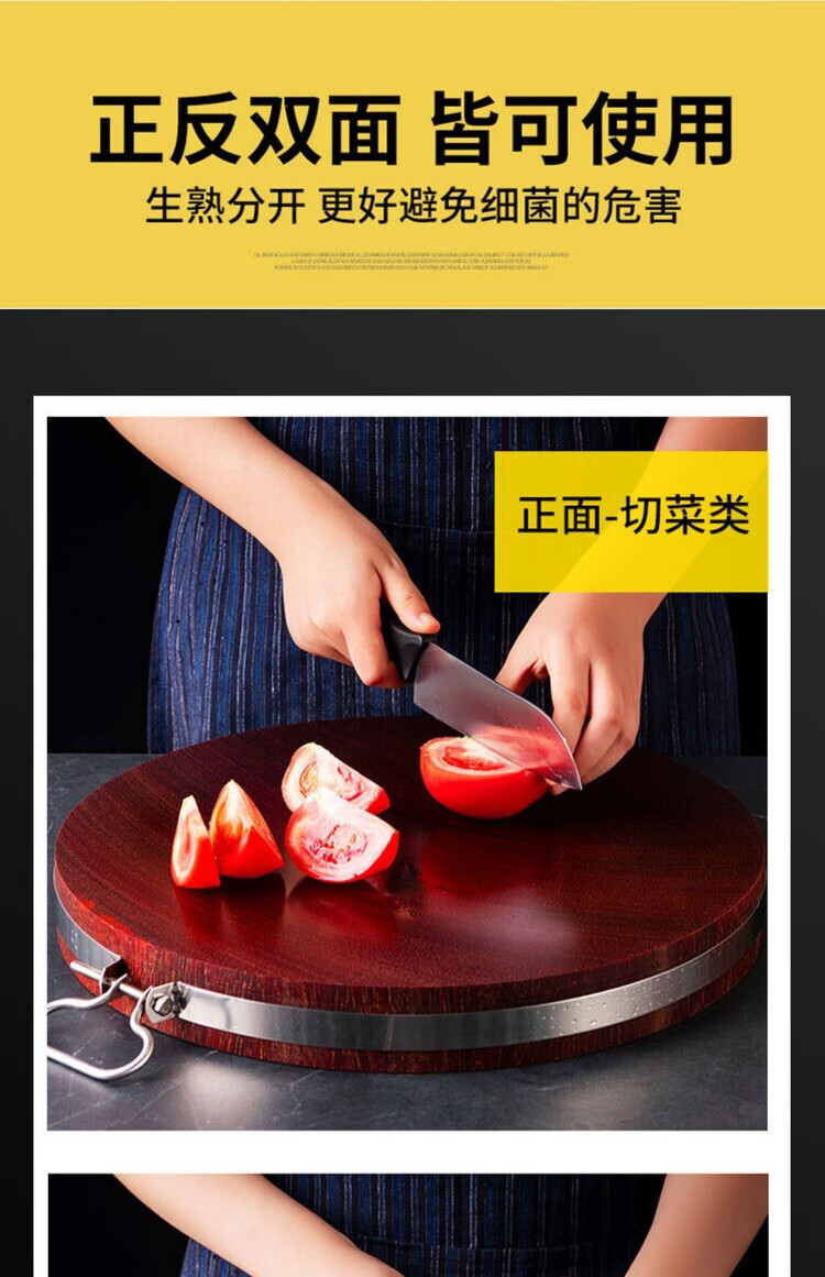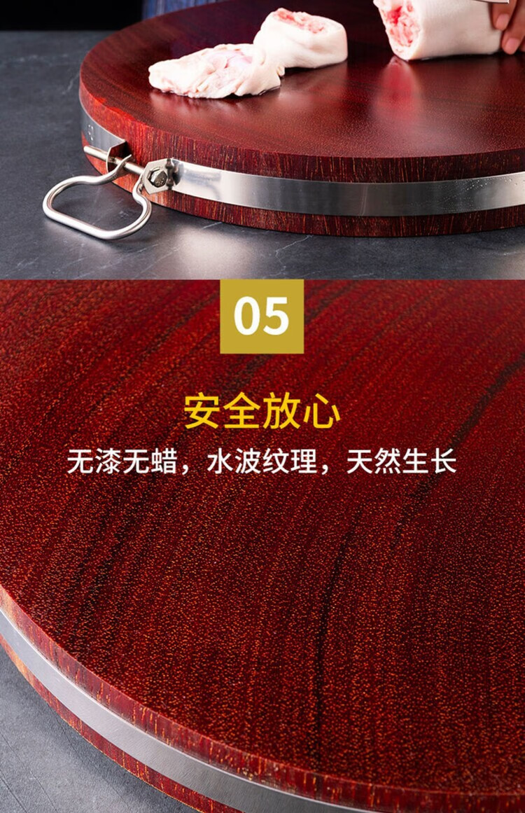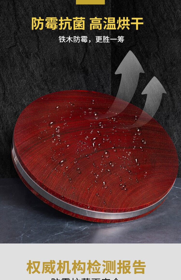 Authentic imported iron wood cutting board household round solid wood cutting board antibacterial and mildew proof whole wood cutting board large knife board thickened diameter 30cm thickness 4cm portable model