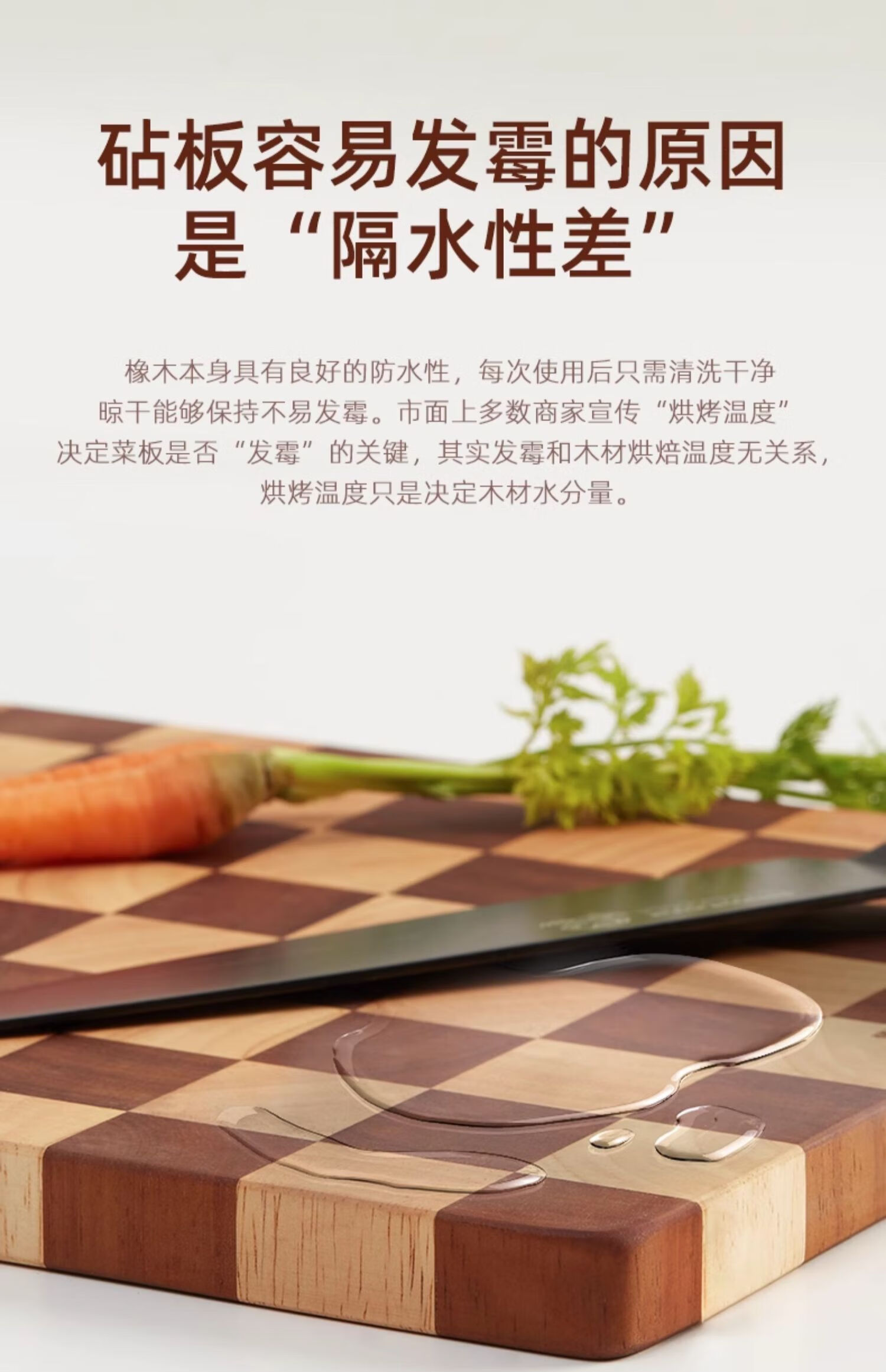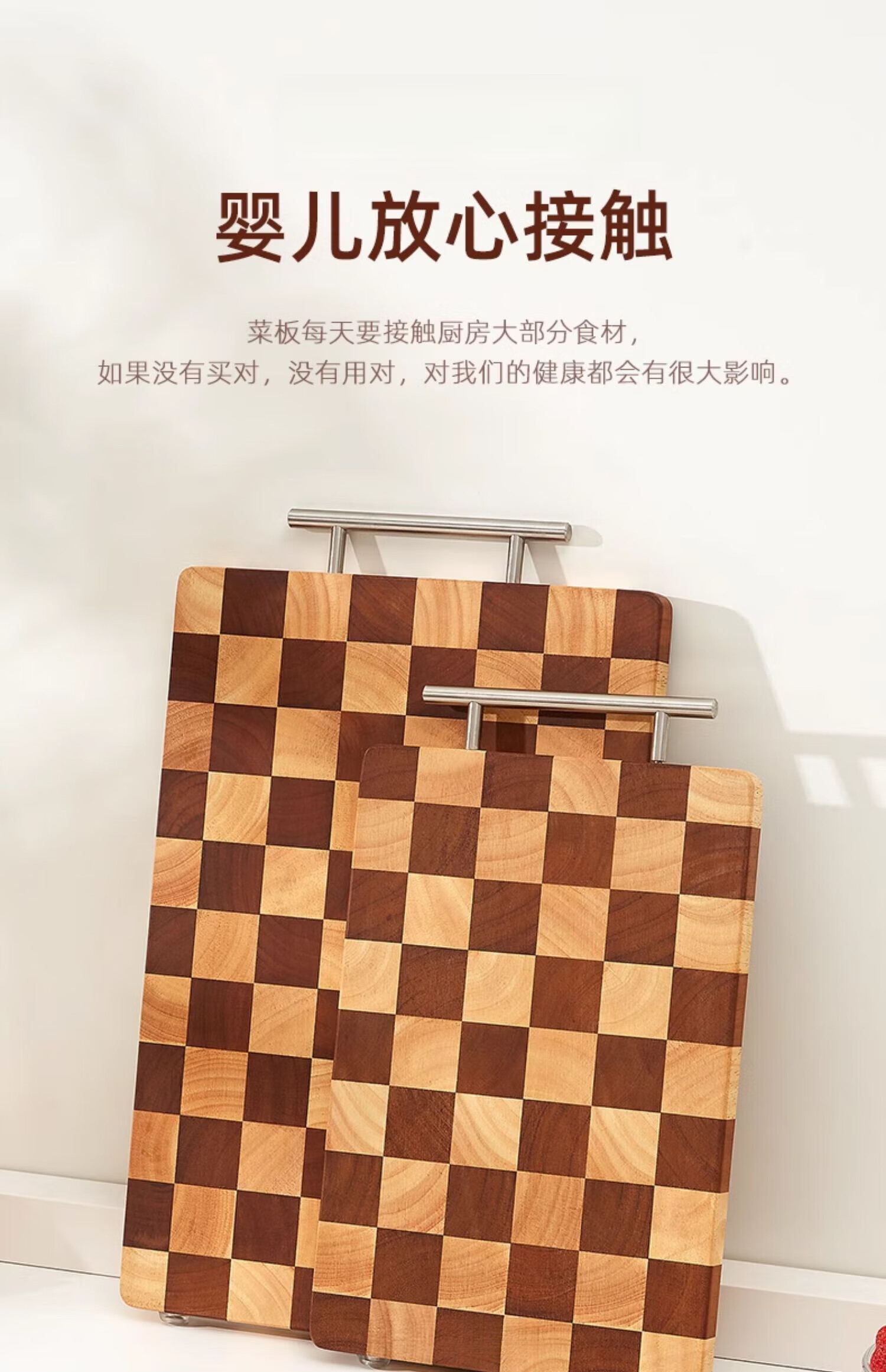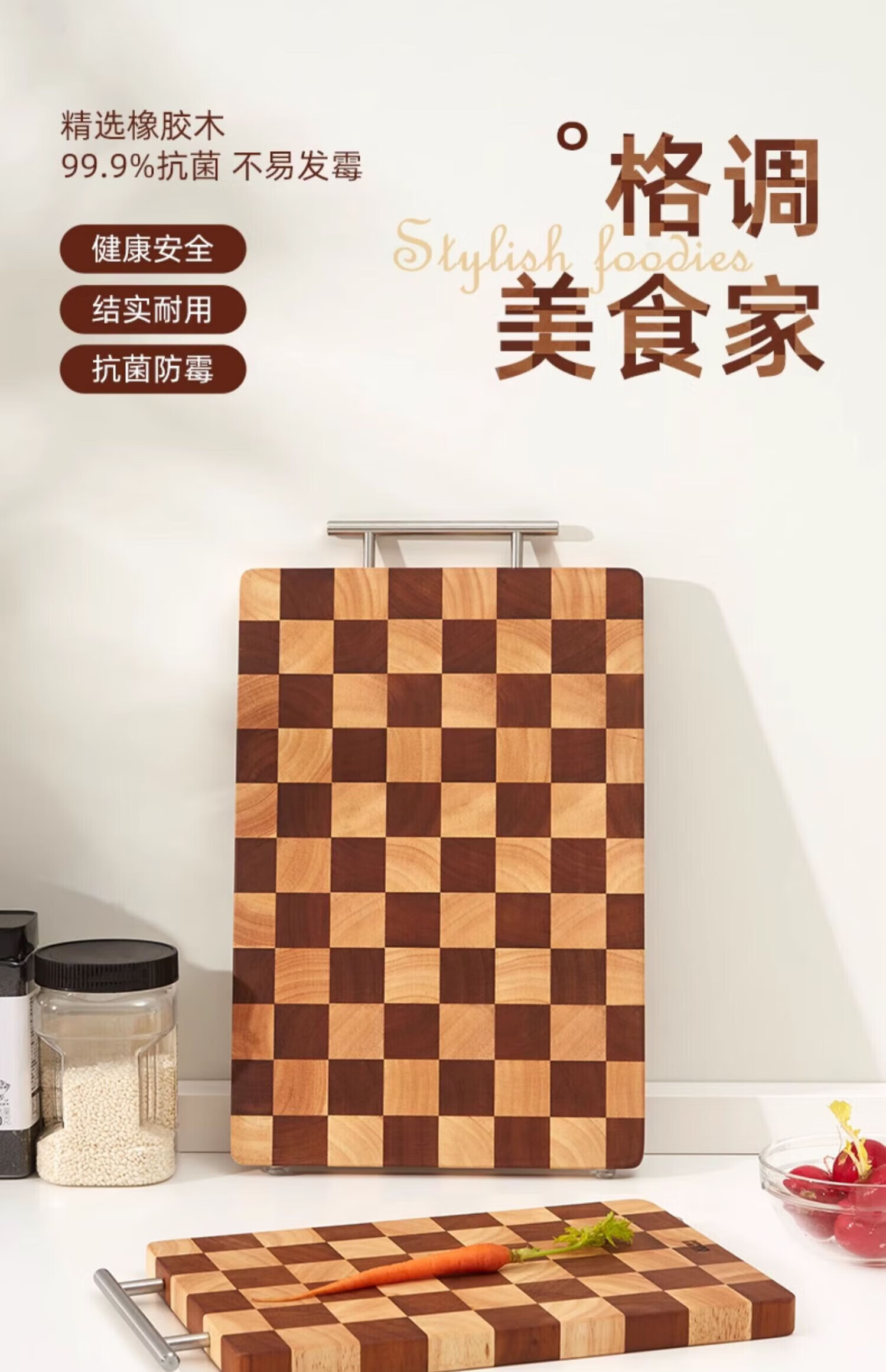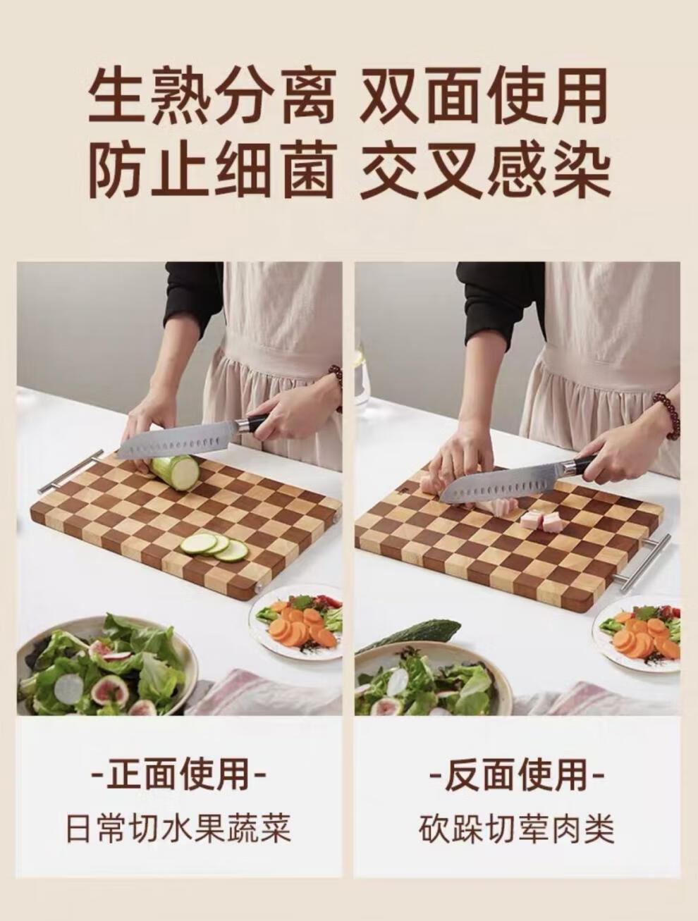 Planche à découper de cuisine damier épaissi double face en bois d'acacia planche à découper domestique planche collante de fruits planche à découper de cuisine en bois massif antibactérien et résistant à la moisissure 39.5*27.5*2.8CM