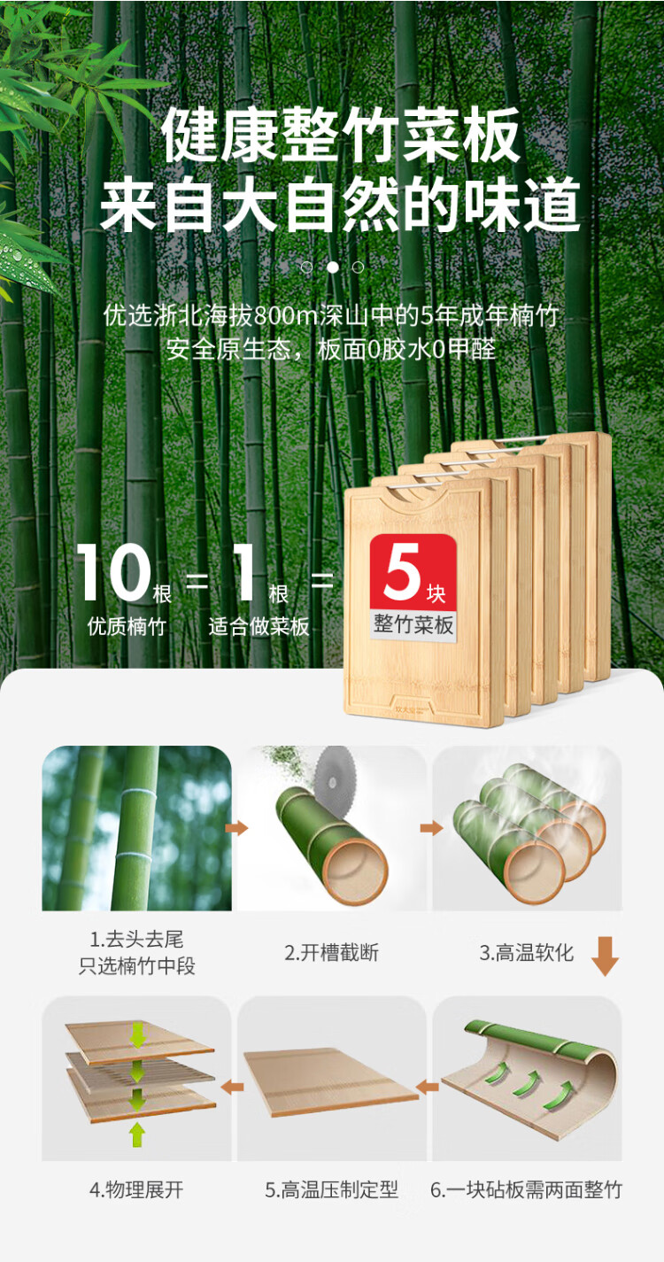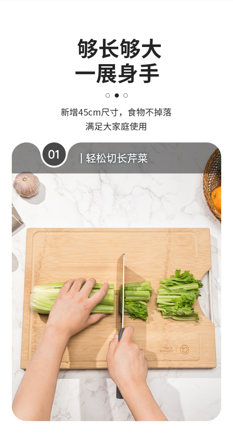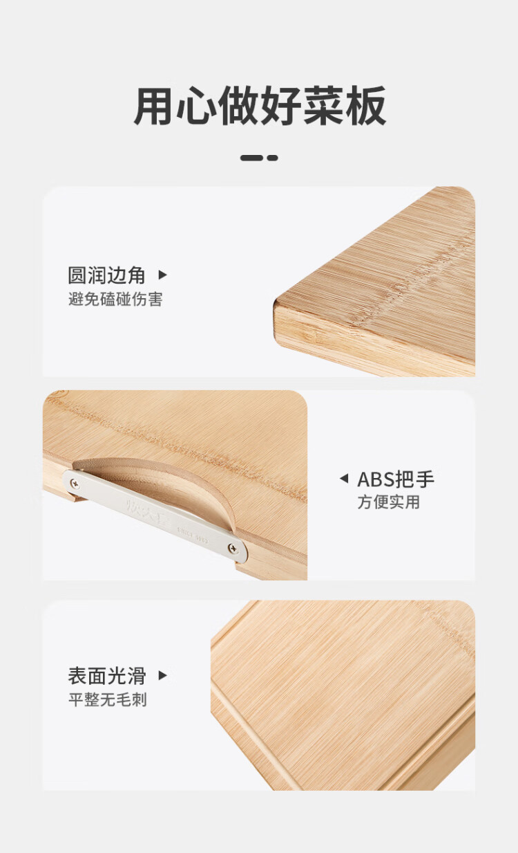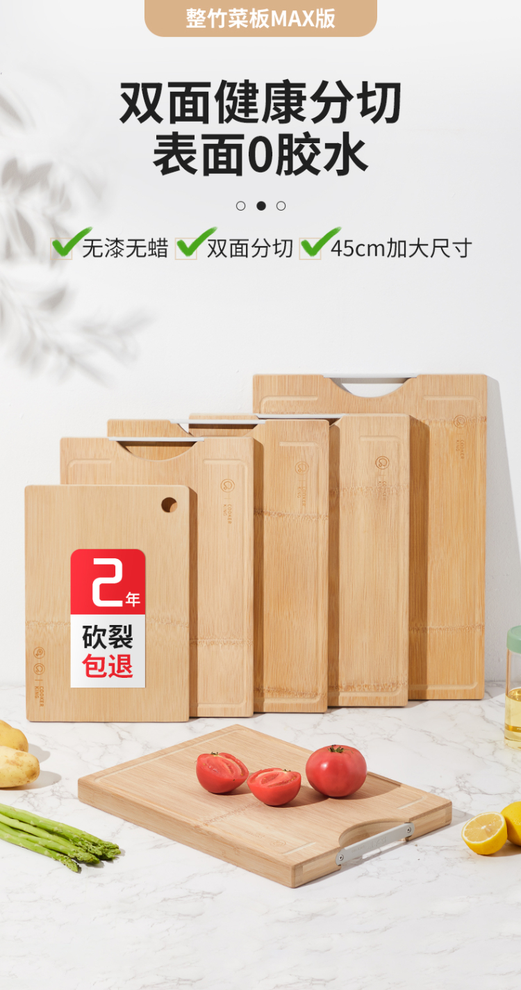 炊大皇天然整竹菜板砧板加厚非拼接防滑切菜板38*26cm