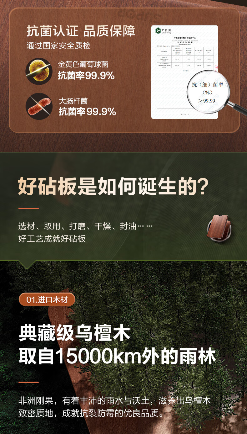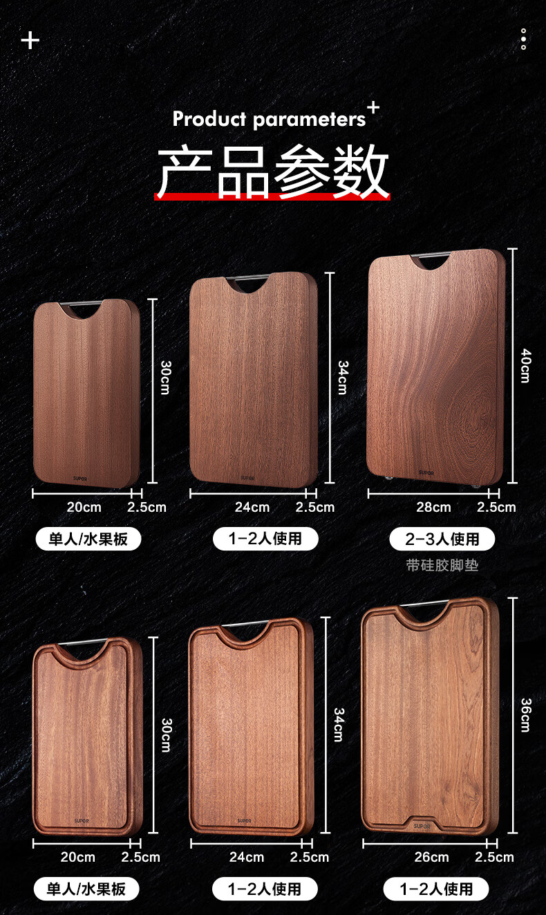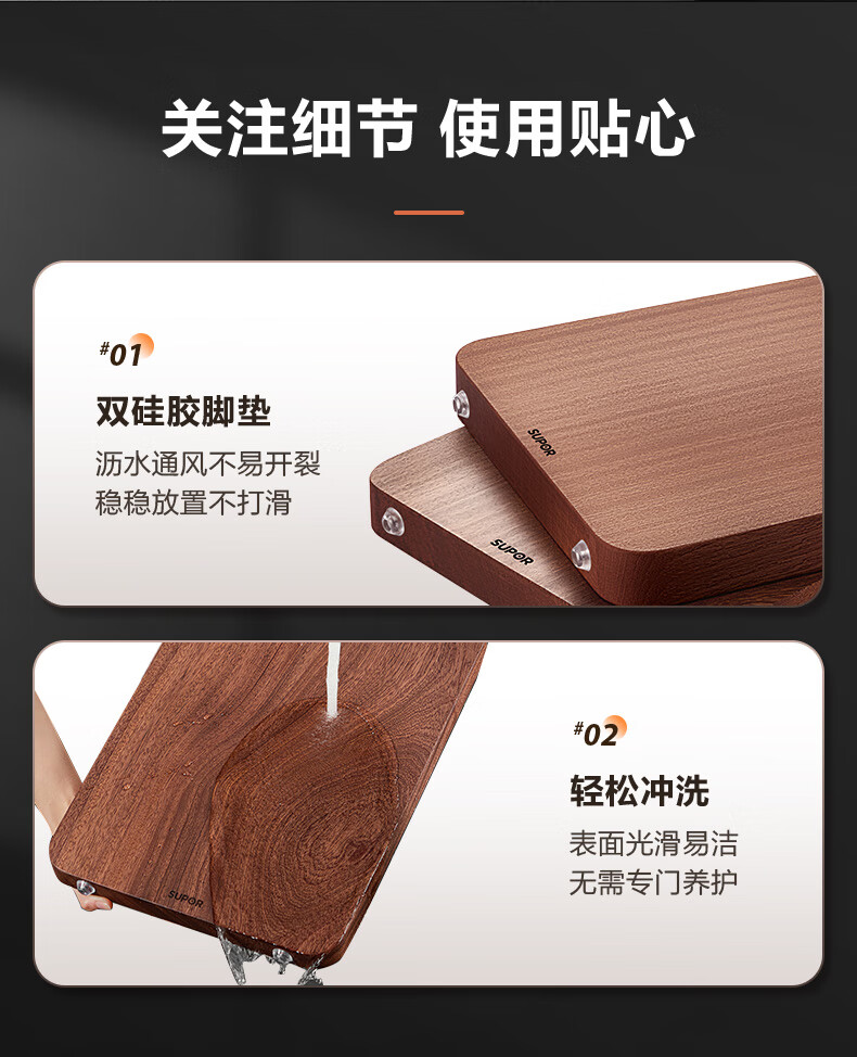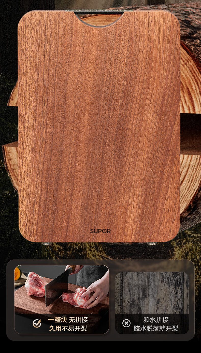 苏泊尔(SUPOR)砧板乌檀木整木菜板实木加厚加大架子家用擀面案板方形剁骨切菜板 大号加厚40cm*28cm(多数人选择)
