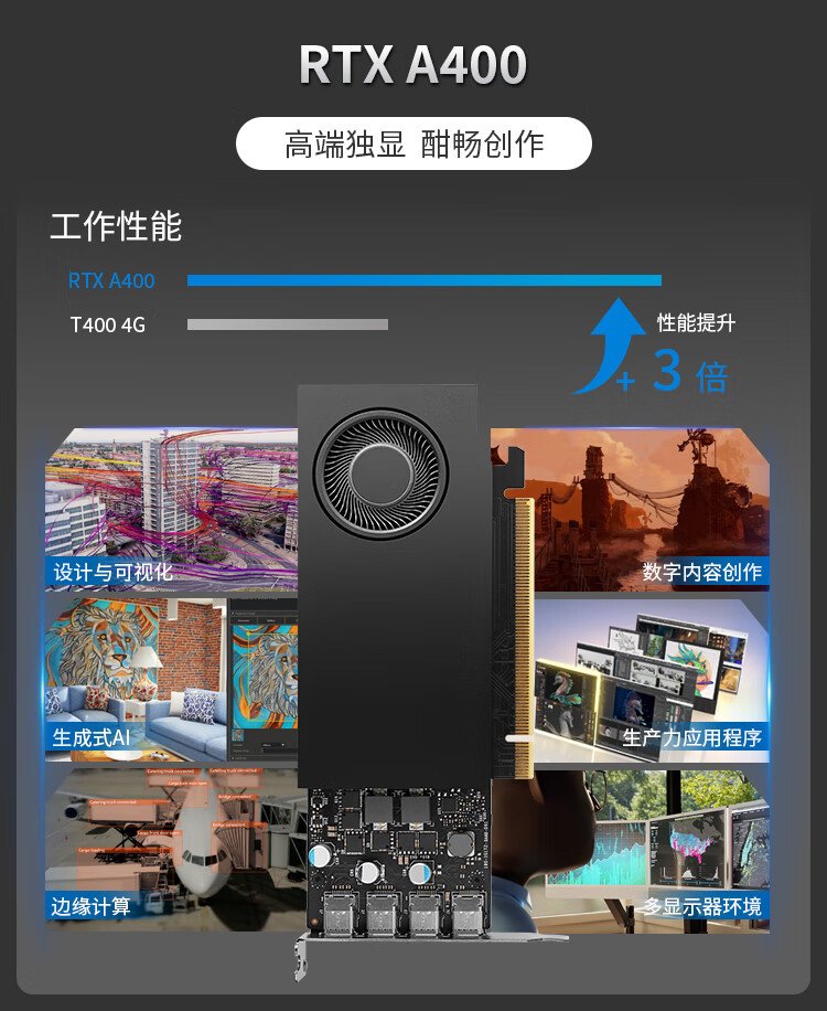 丽台(LEADTEK)NVIDIA RTX A400 4GB GDDR6 平面设计 多屏输出 专业图形显卡企业