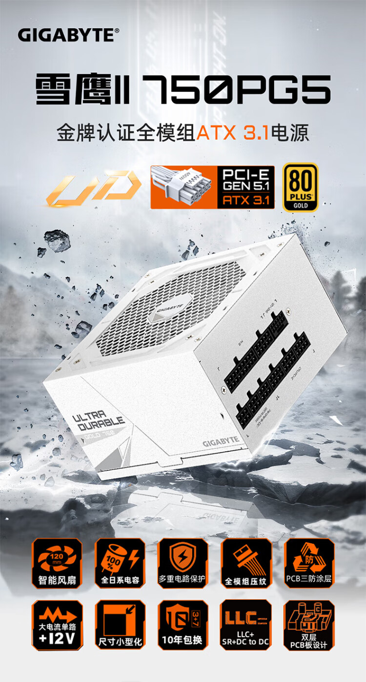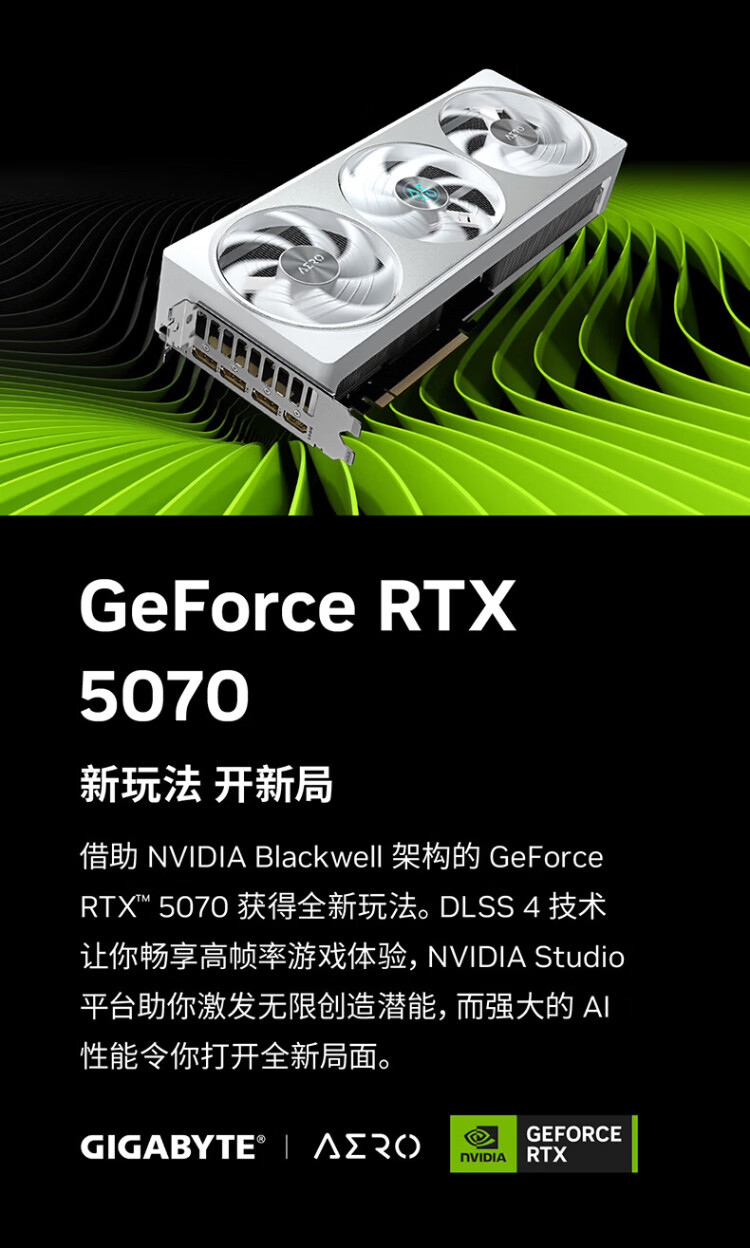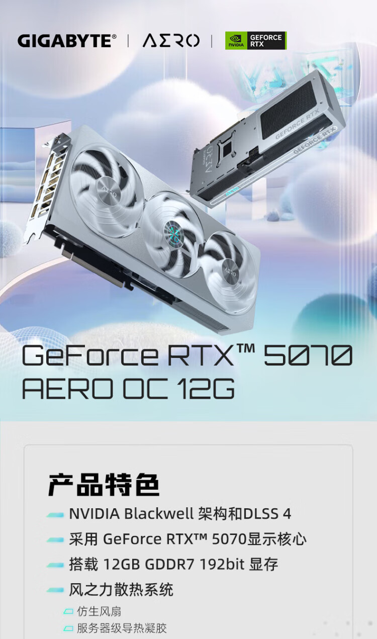 技嘉(GIGABYTE)雪鹰 5070 AERO OC 12G 显卡 + 750W雪鹰金牌电源套装